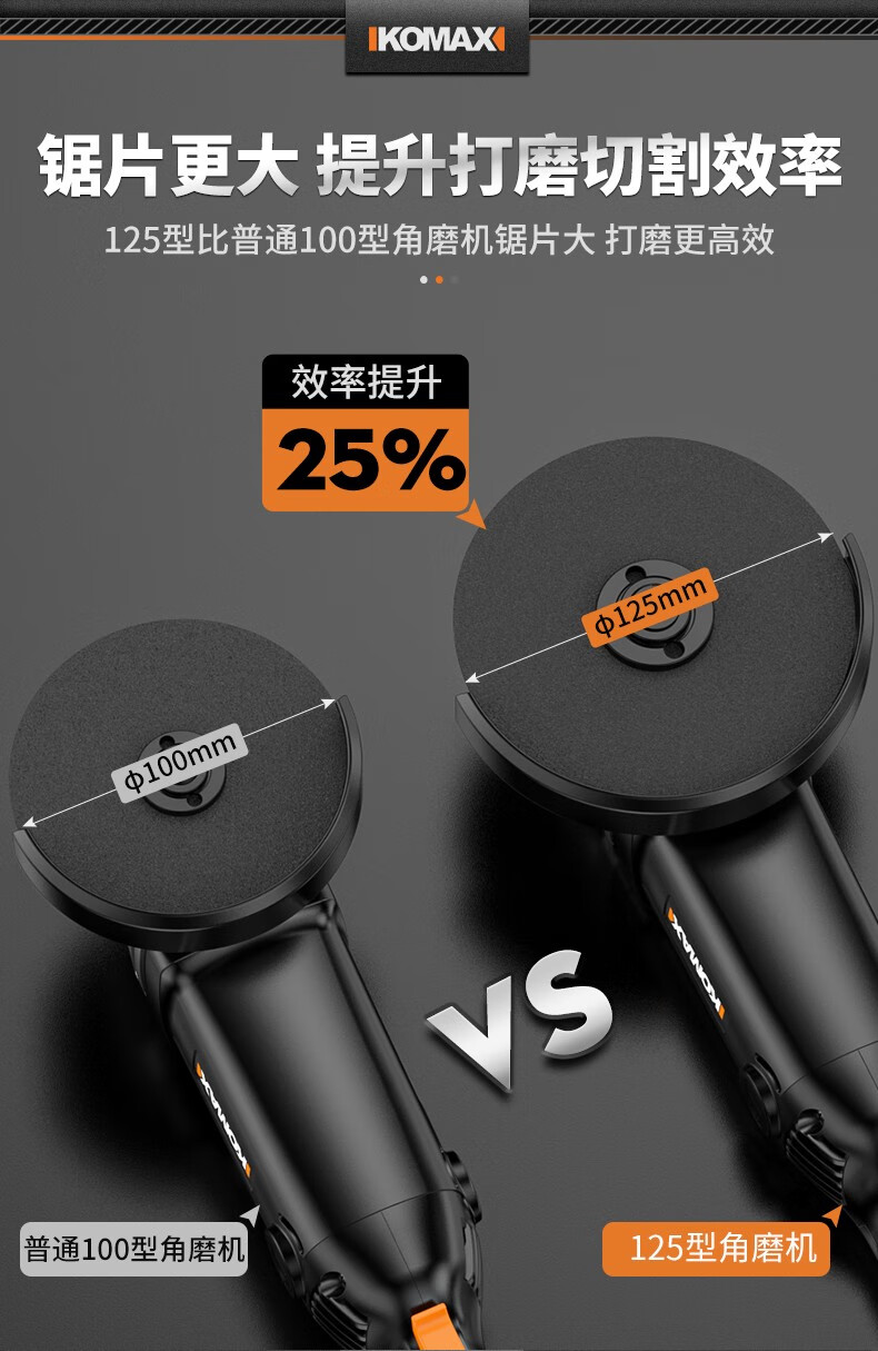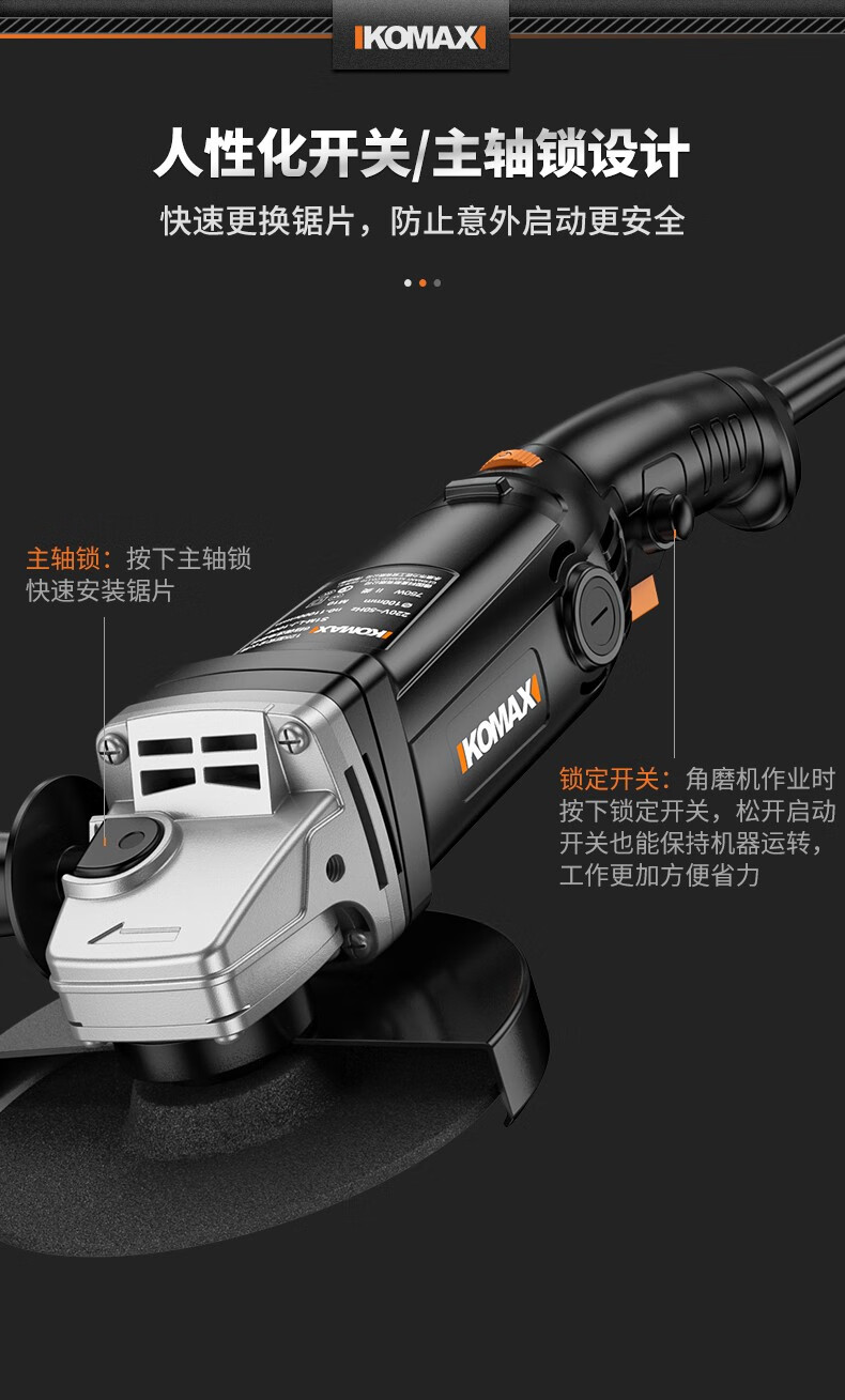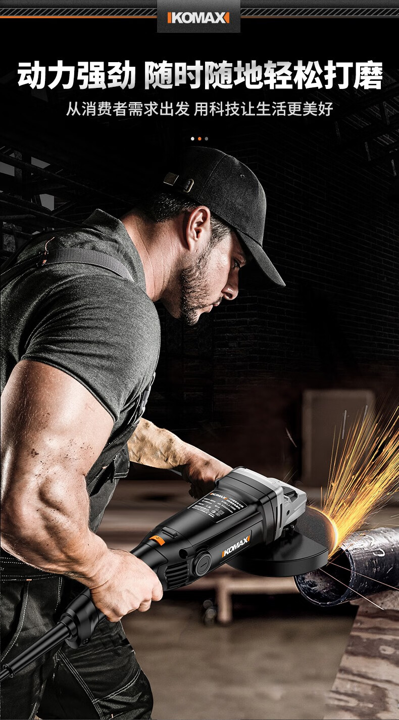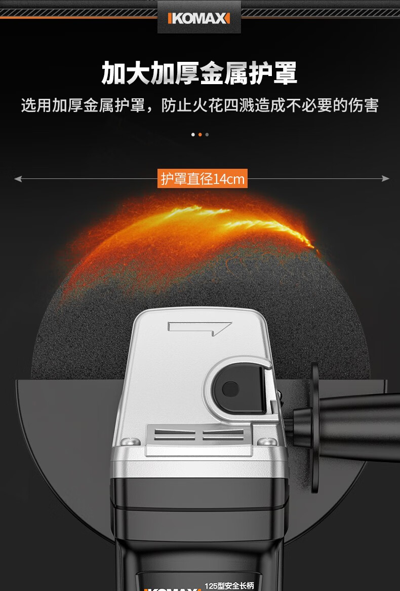 KOMAX angle grinder multi-function grinder polisher hand grinder polisher cutting machine household hand grinding wheel 100 type safety long handle 6-speed speed adjustment junior package