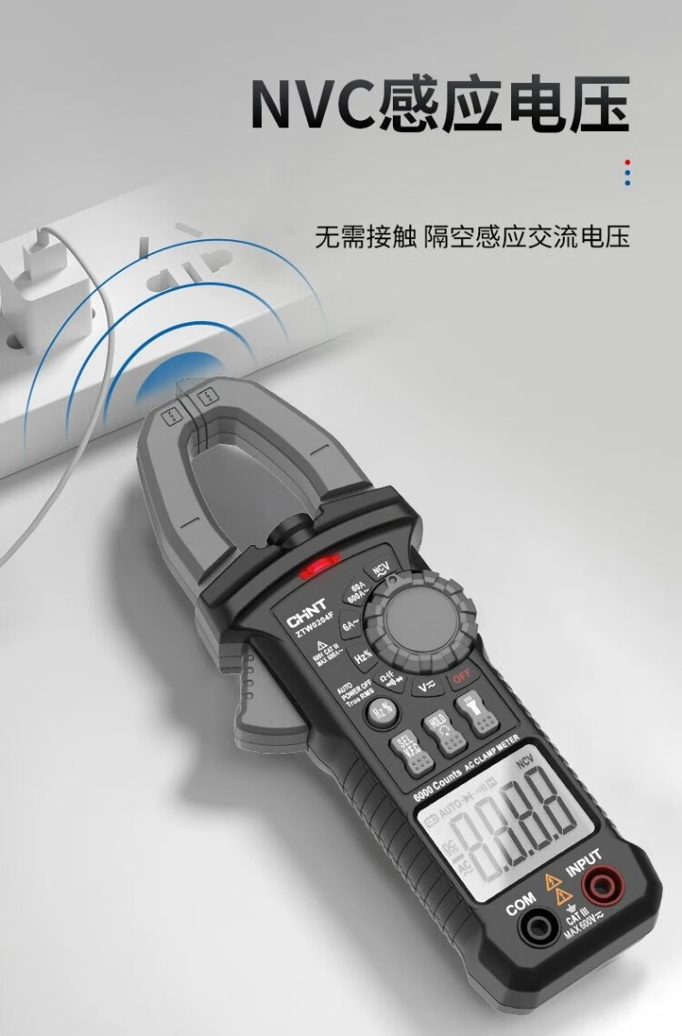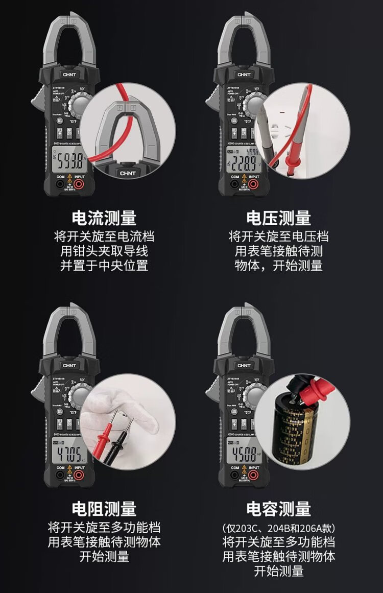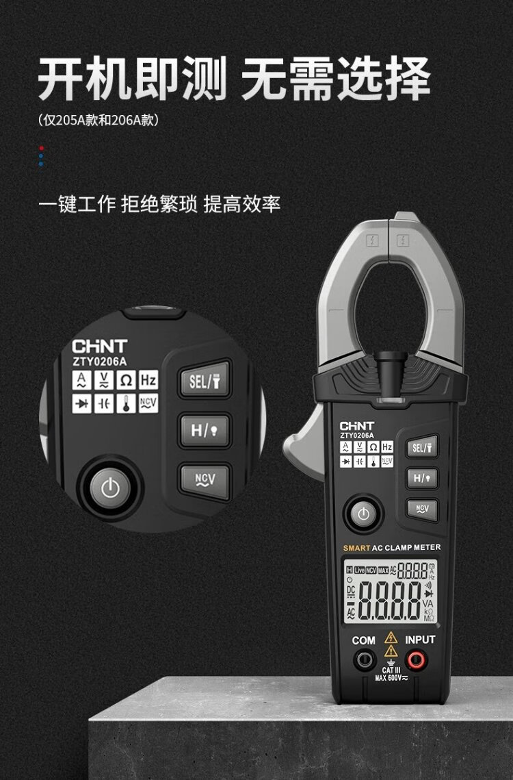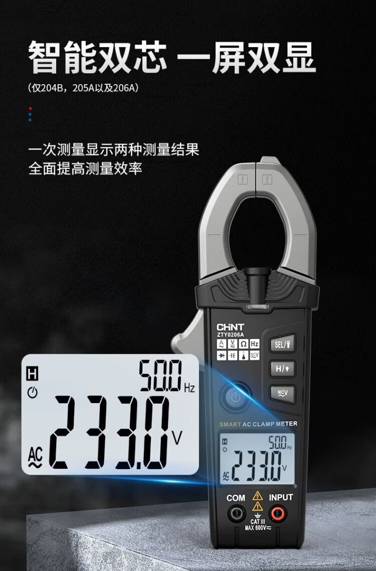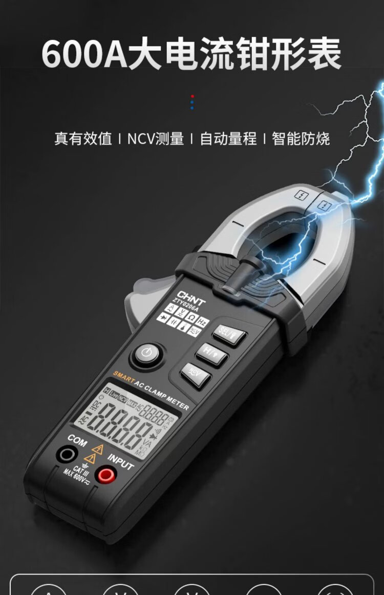 Chint (CHNT) digital clamp meter intelligent anti-burn ammeter high-precision multimeter voltage resistance 600A electrician 204E Supreme Edition 20A test lead + charging set