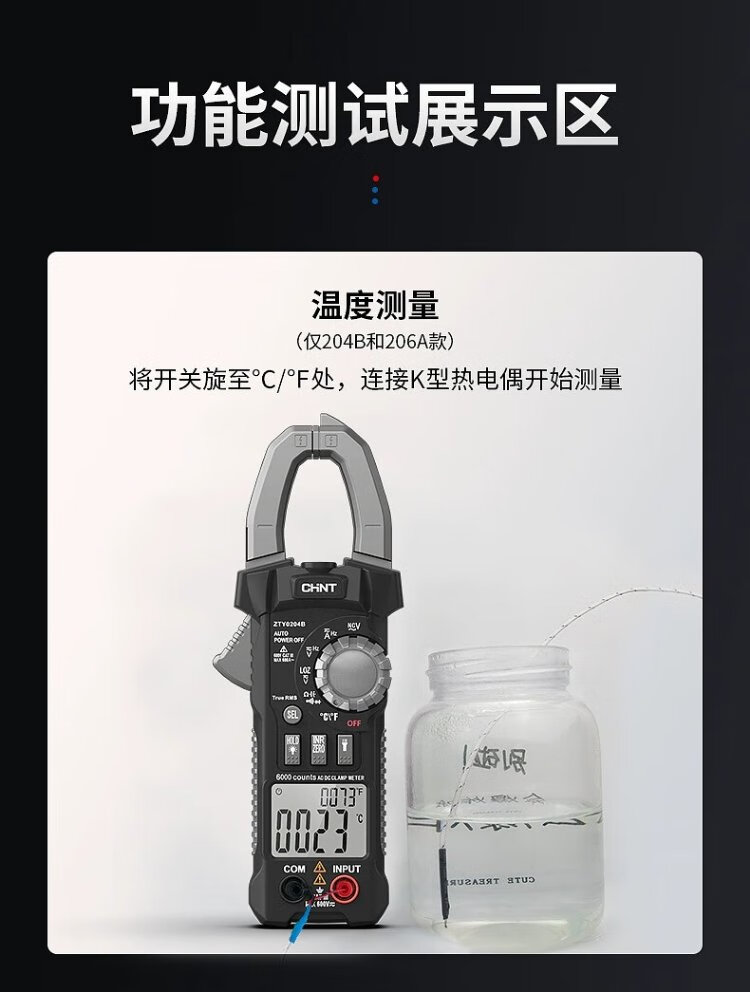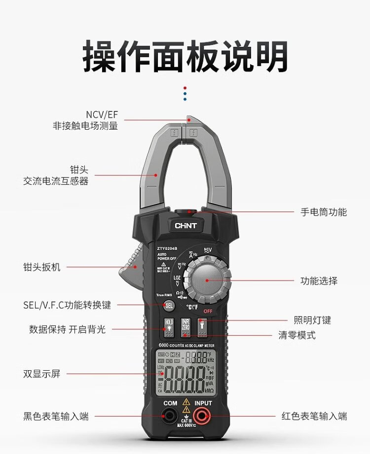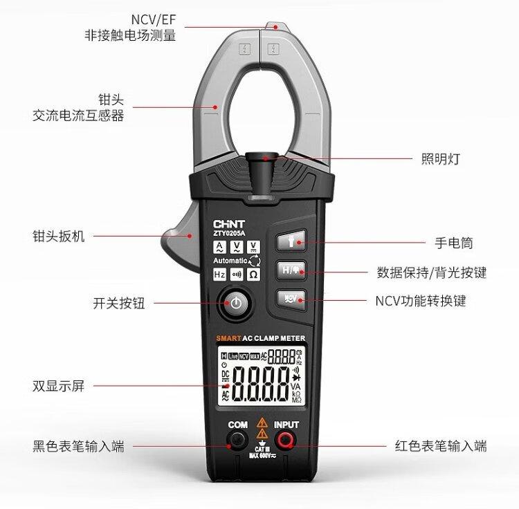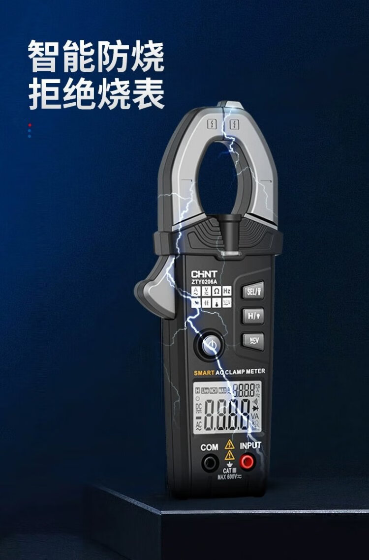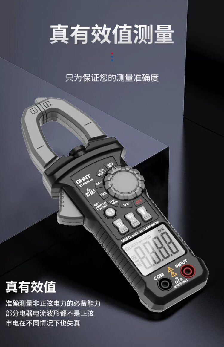 Chint (CHNT) digital clamp meter intelligent anti-burn ammeter high-precision multimeter voltage resistance 600A electrician 204E Supreme Edition 20A test lead + charging set