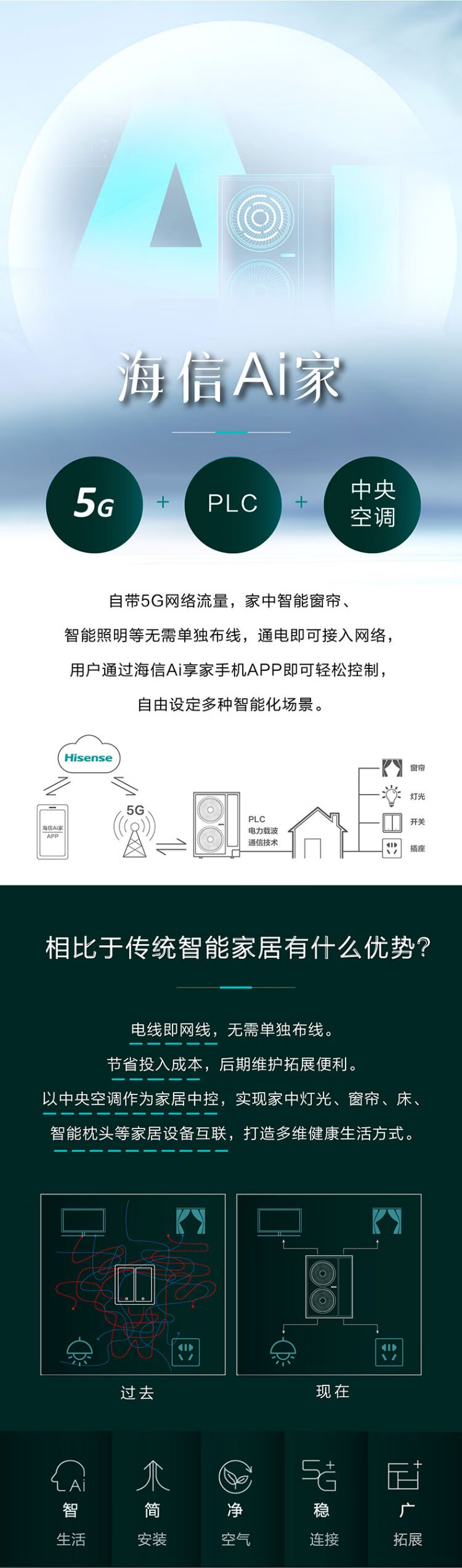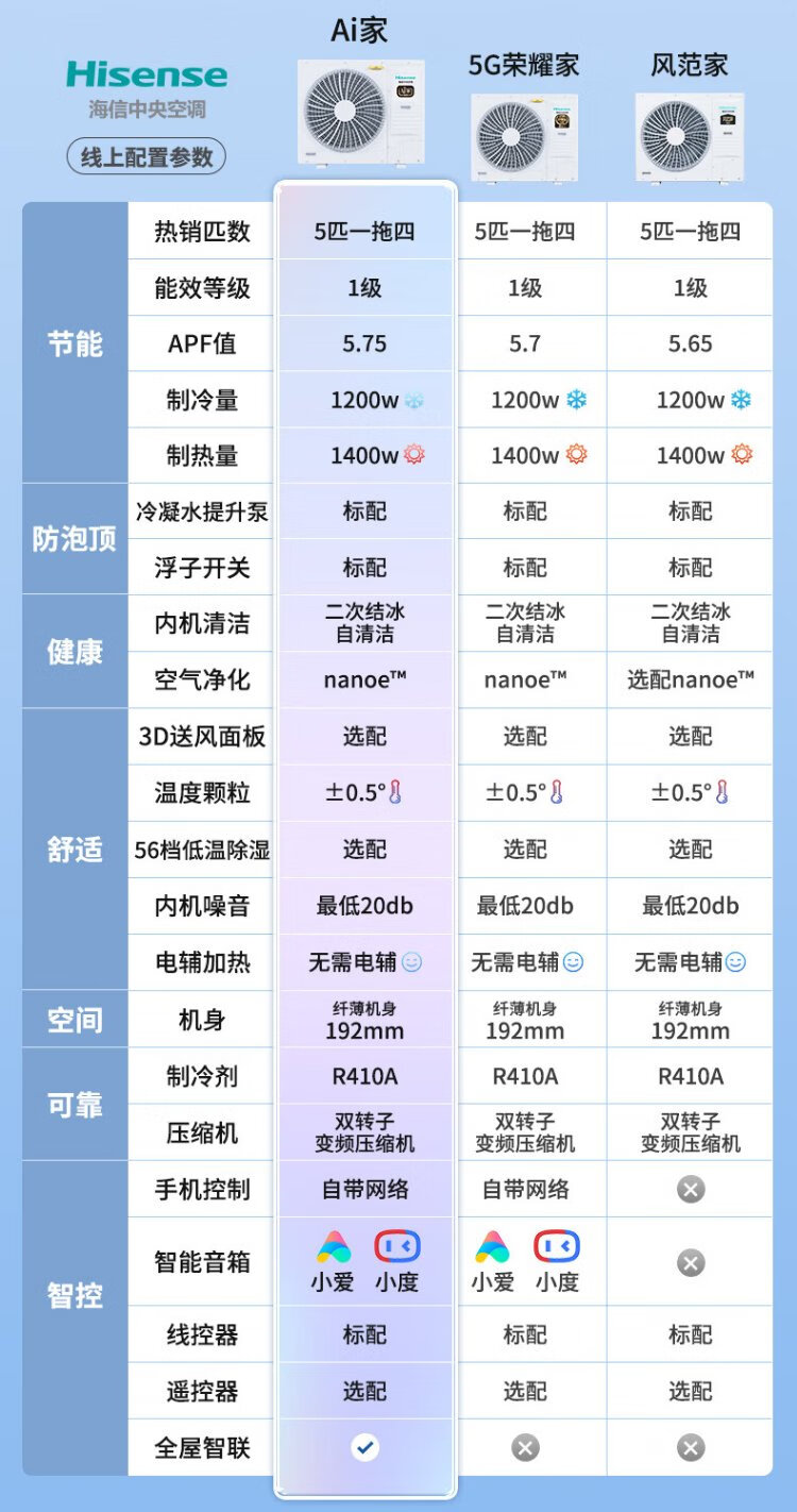 Hisense Ai home series household central air conditioner multi-split first-level energy efficiency full DC frequency conversion comes with 5G network whole-house intelligent control, large 6 horses, first-level energy efficiency 180|one to seven|110-160 1st level frequency conversion