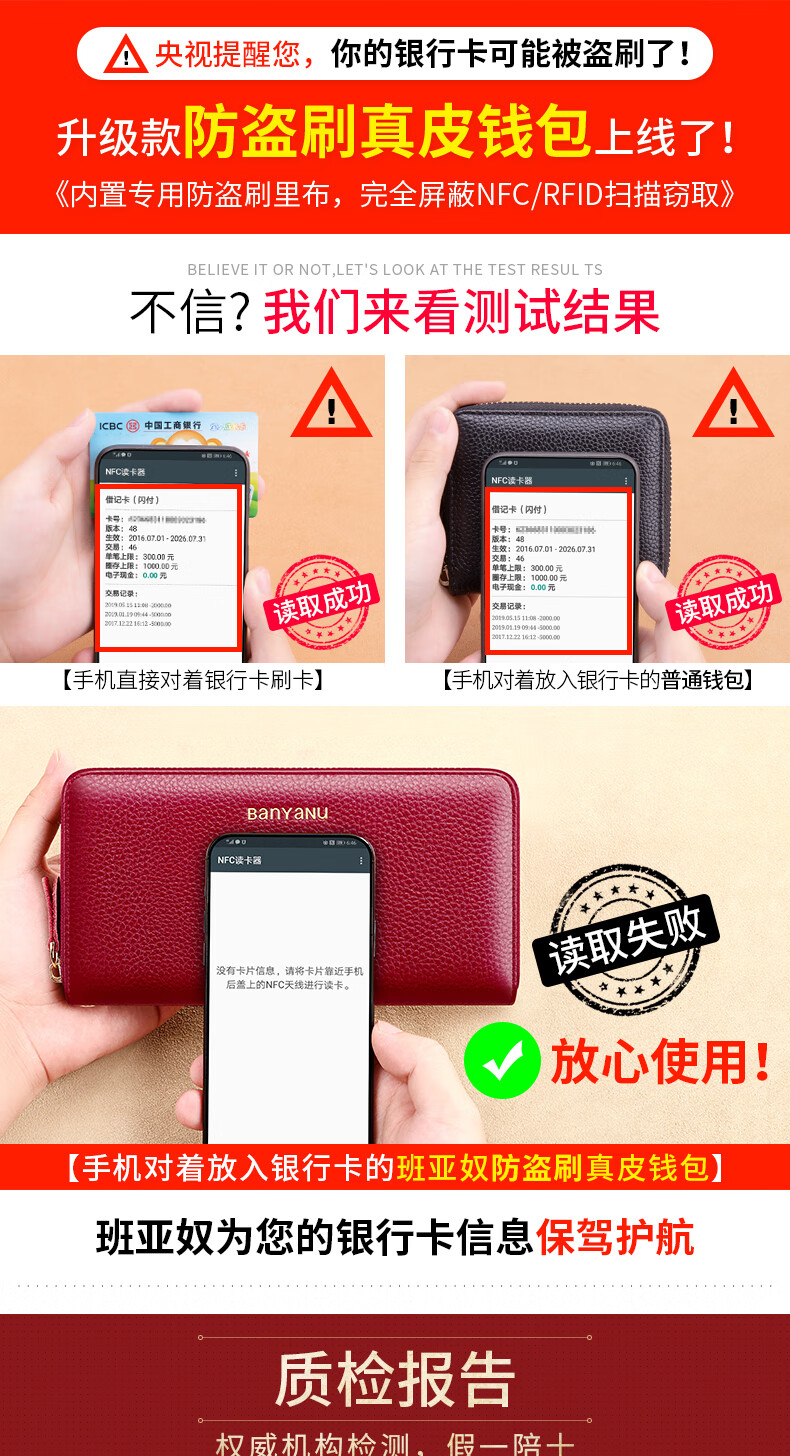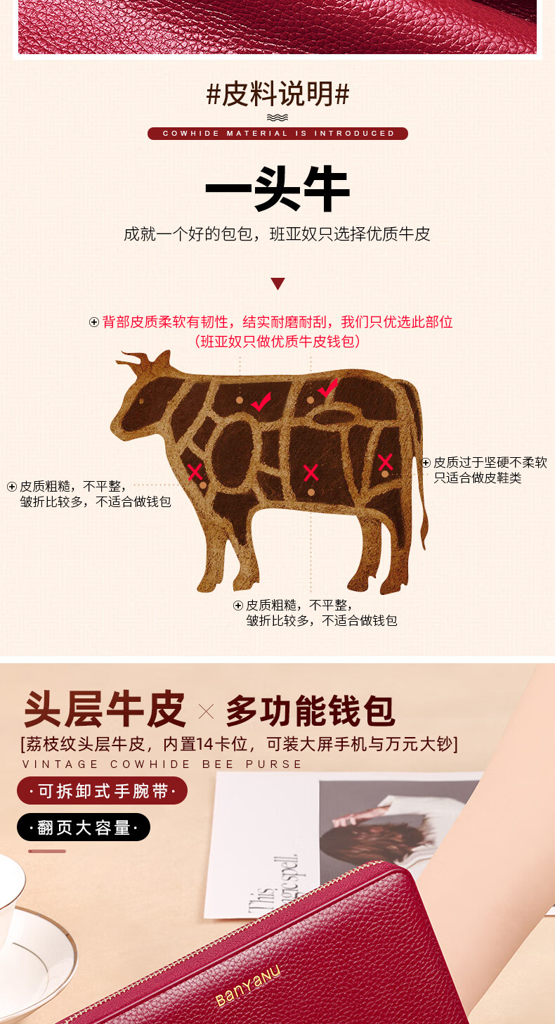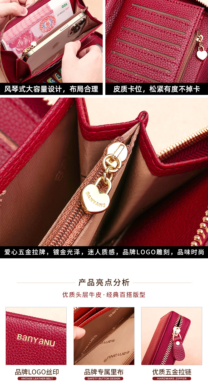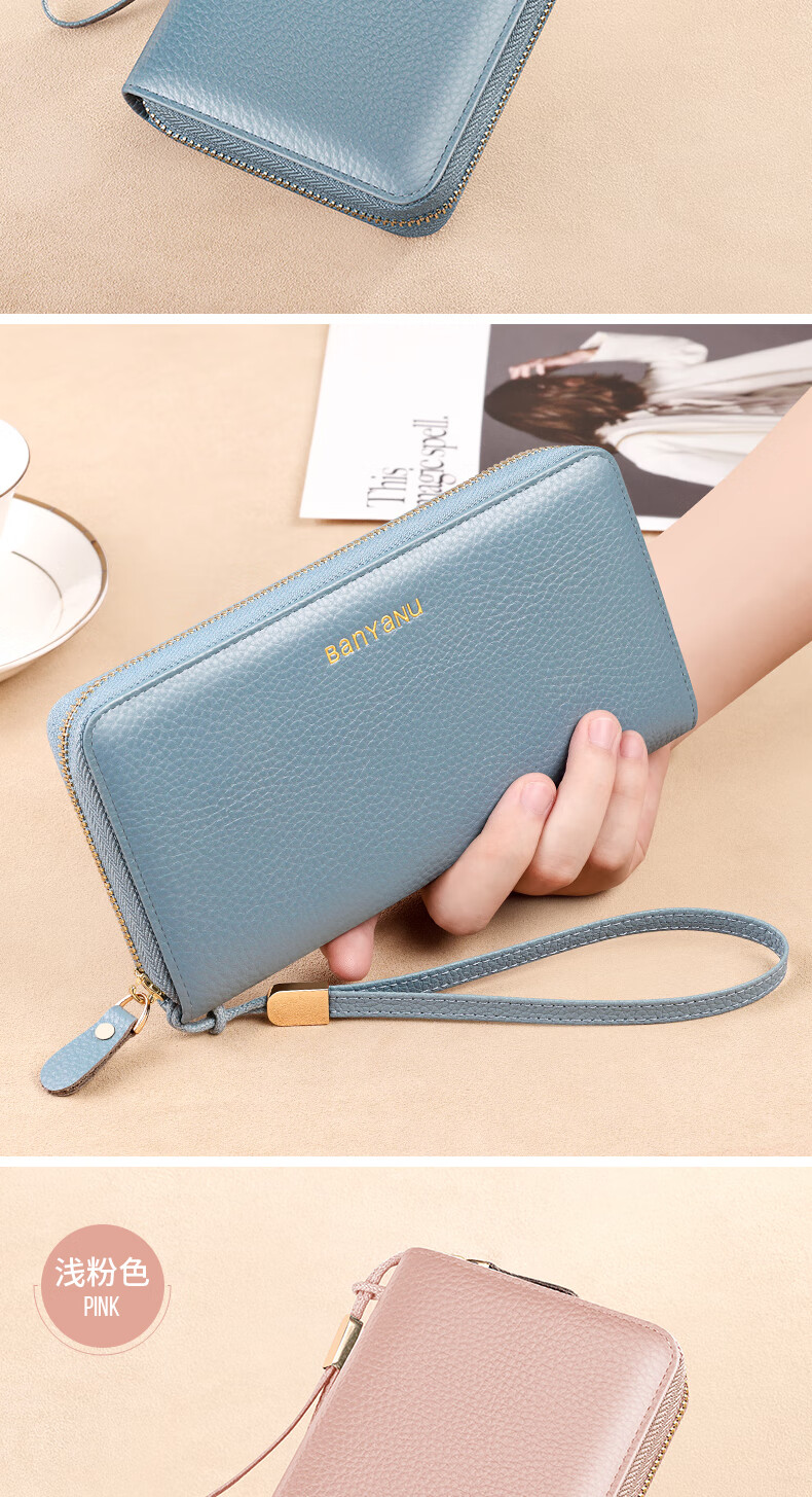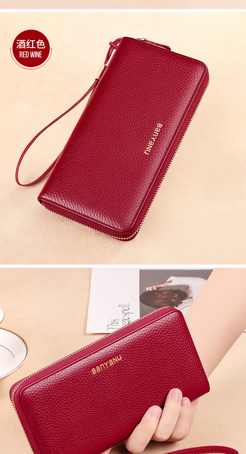 Banyanu Wallet Women's Long Ladies Mobile Phone Bag 2025 New Large Capacity Wallet First Layer Cowhide Zipper Genuine Leather Clutch Black - Single Zipper (First Layer Cowhide)