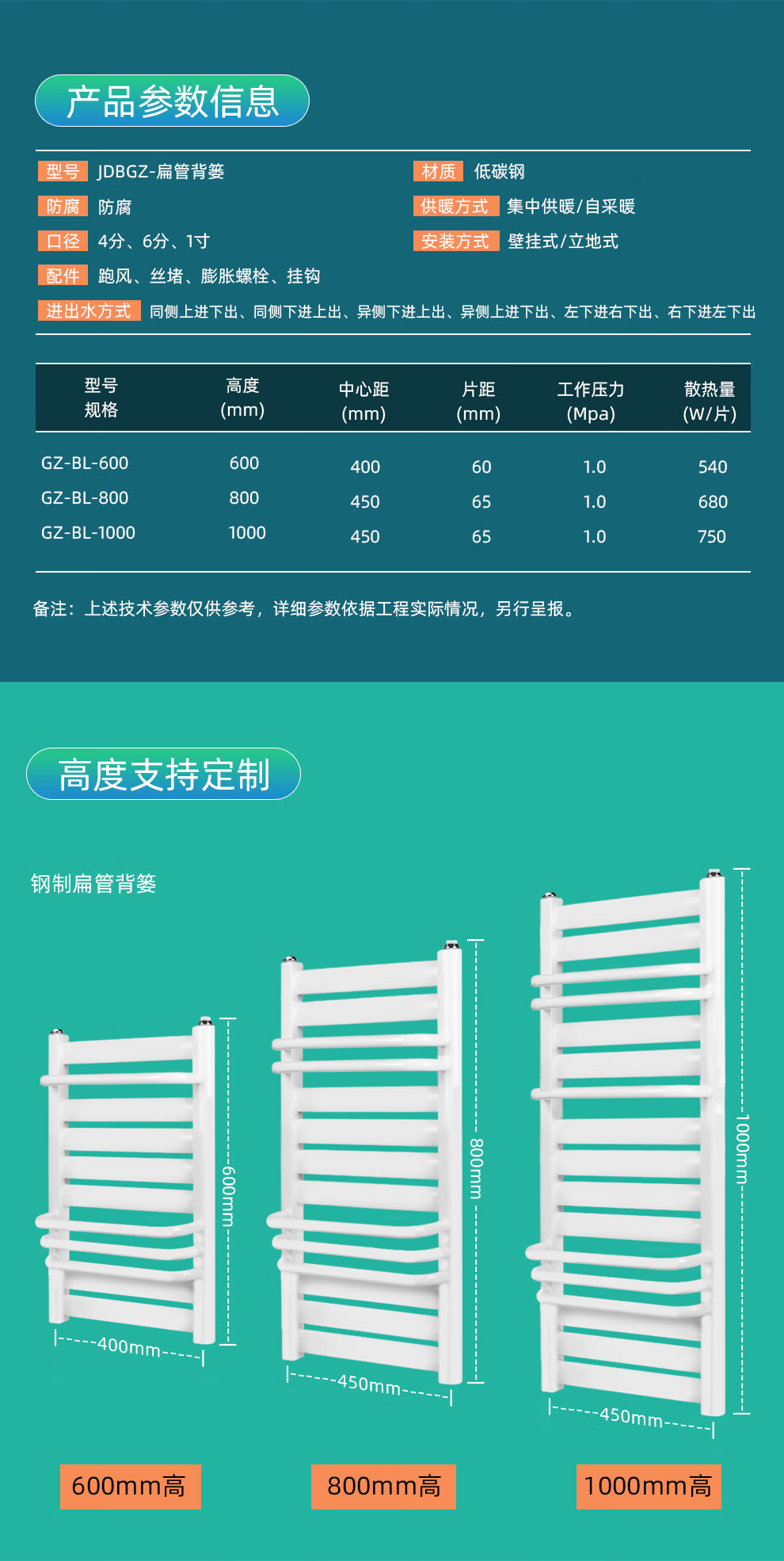 JIADB Home Depot Radiator Small Back Basket Bathroom Radiator Household Plumbing Wall-Mounted Steel Flat Tube Back Basket 400x600mm