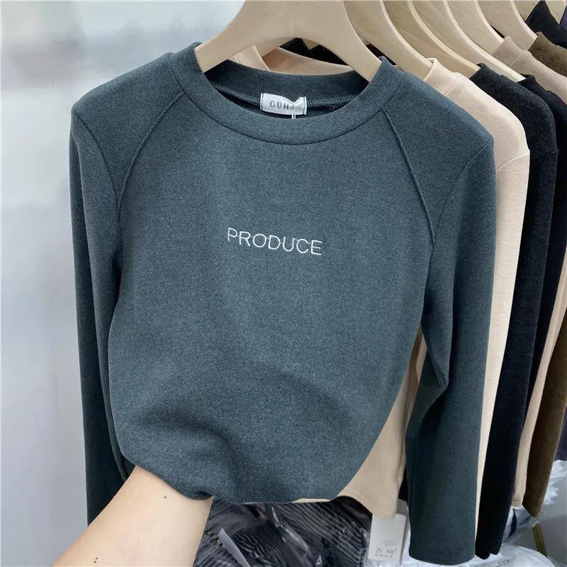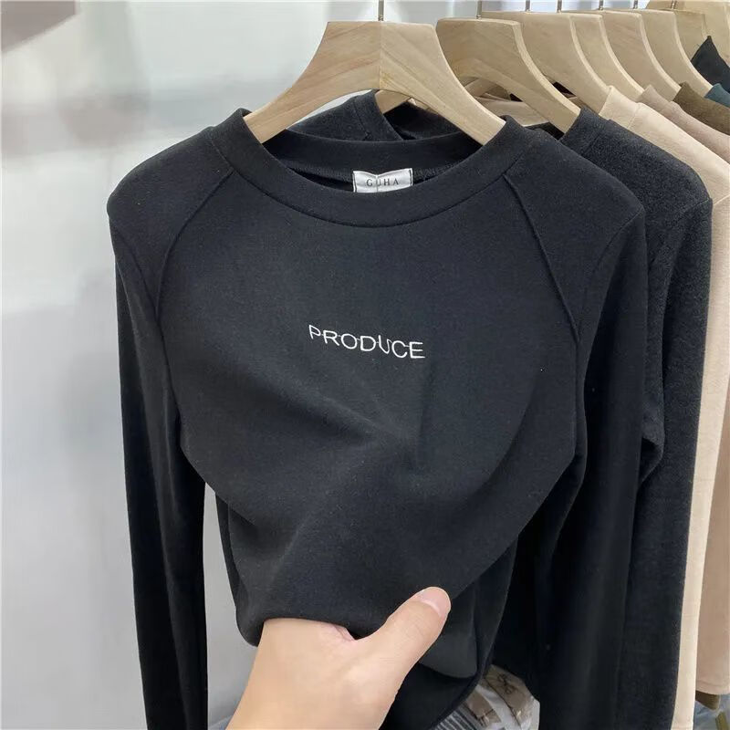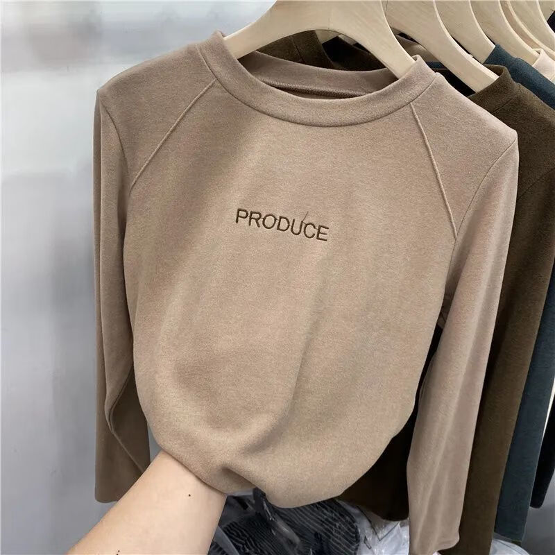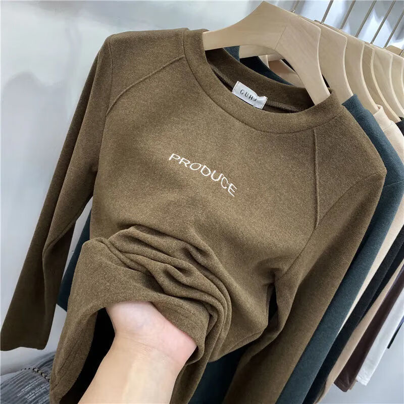 Xunliba velvet bottoming shirt for women in autumn and winter, versatile new velvet warm long-sleeved t-shirt, stylish inner top for women, dark gray warm velvet XL 115-130