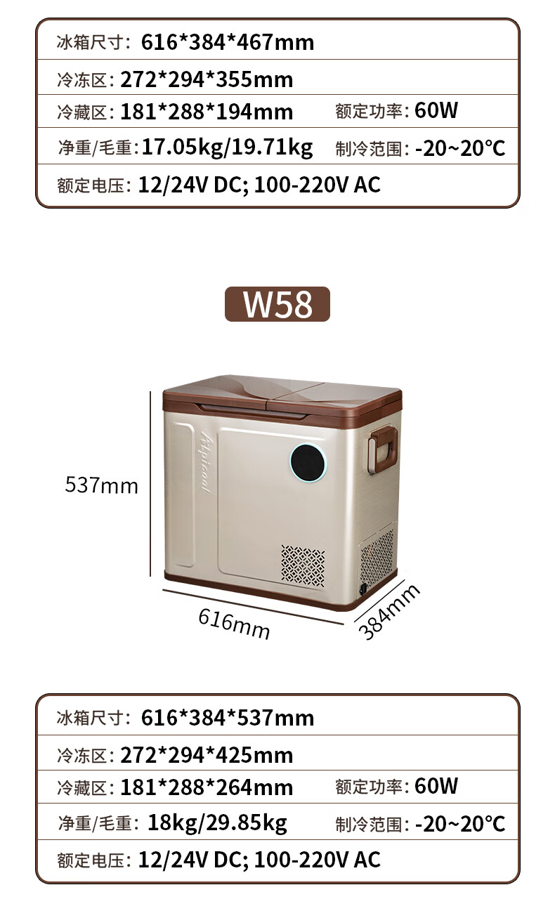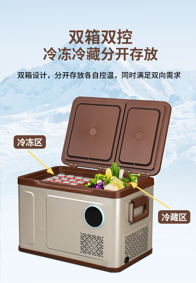 Binghu Binghu new car refrigerator compressor refrigeration car home dual-purpose 12v24v two-door dual-temperature refrigerated freezer truck WH58 car home dual-purpose dual-temperature dual-control + APP 49.6 liters