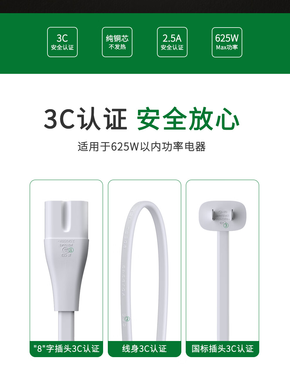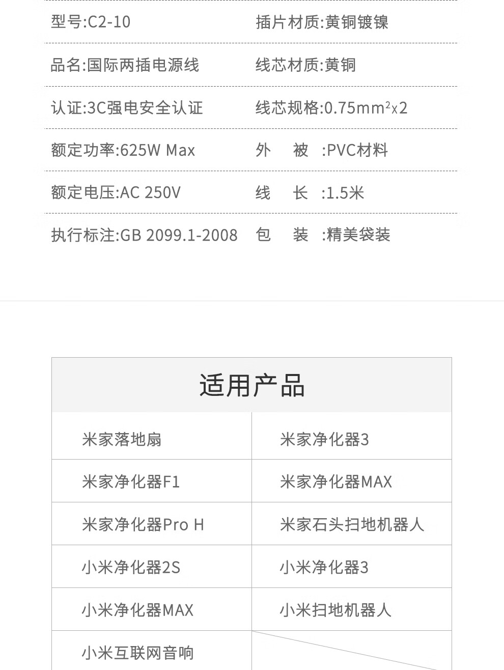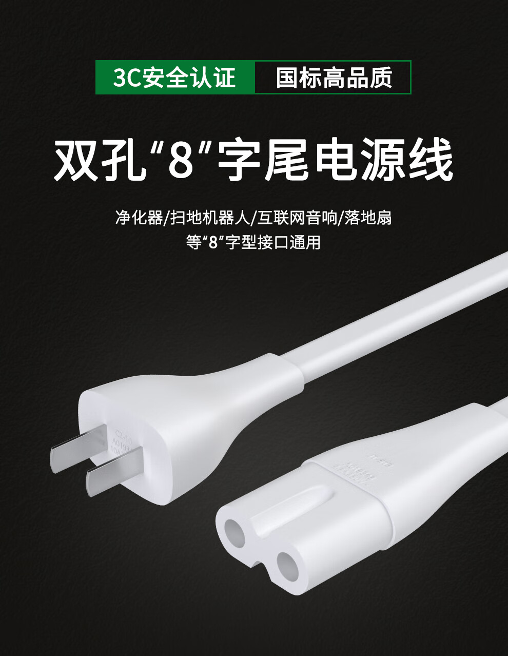 Original Huawei purifier 720 power cord 1i c400 EP500H KJF500 S800 1Pro wire plug 8-character wire two-hole connection line air purification two-hole eight-character power cord - white 1.5 meters