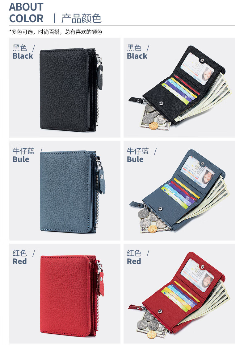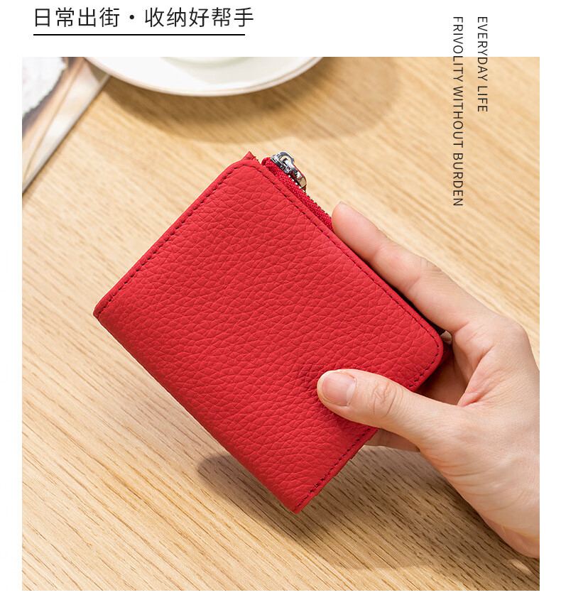 SHARELOVE genuine leather anti-theft brush degaussing wallet short zipper folding photo men and women 2023 new ultra-thin wallet card bag grass green