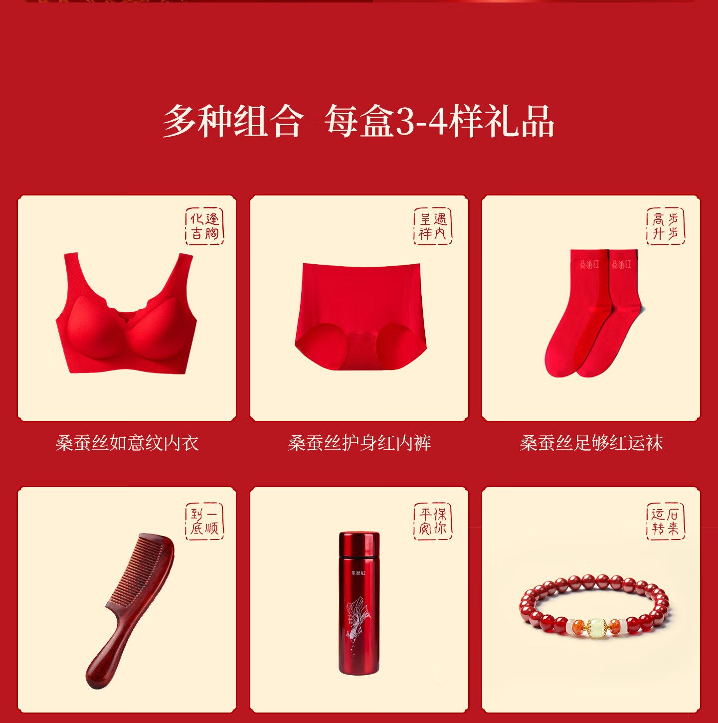 Zodiac Red Underwear Set Zodiac Year Women's Bra Red Big Red Box No Size Bra Underwear Gift Box New Year Horse Gift Yiren Zhizhen Edition - Silk Bra Set + Silk Stockings * 2 M 80/120 Recommended regular version (80-120 pounds)