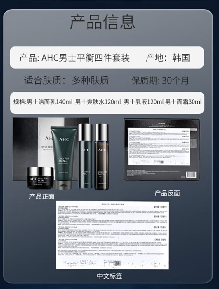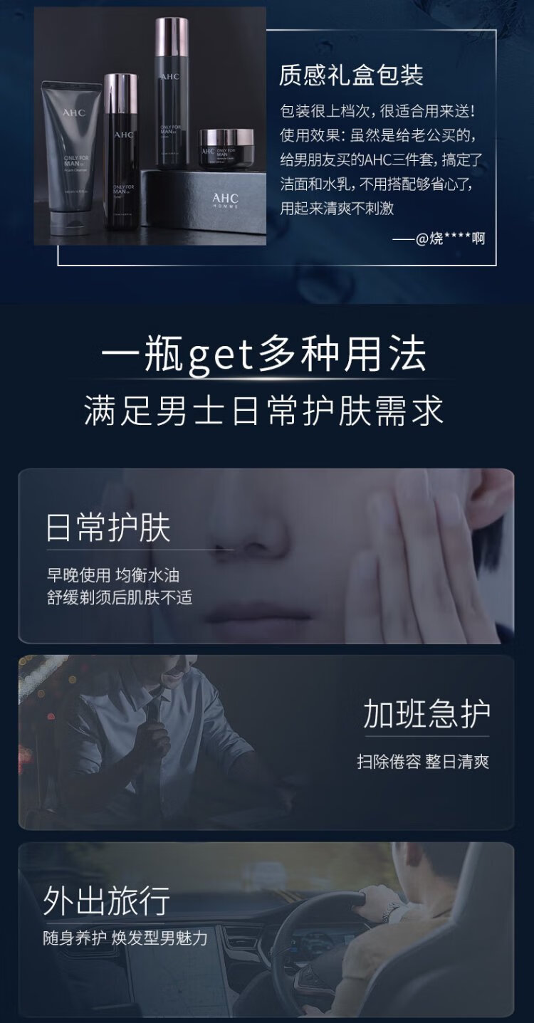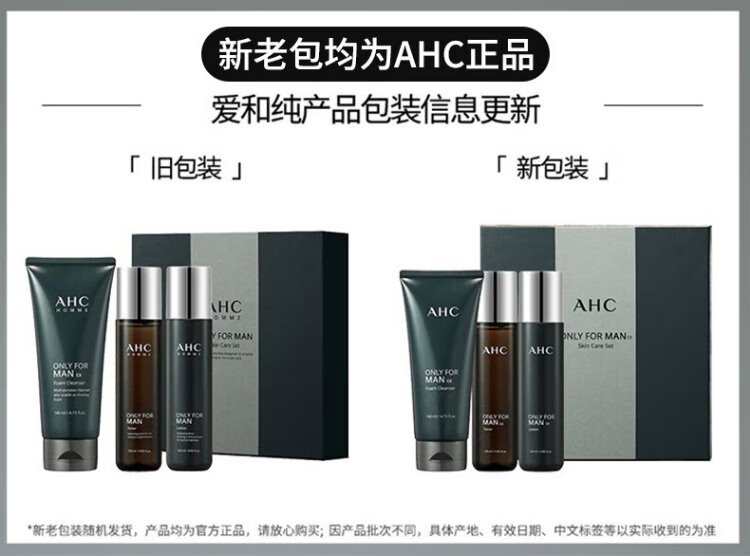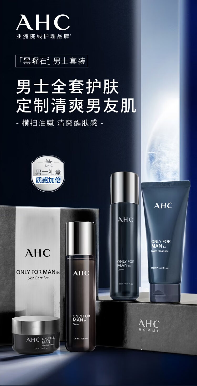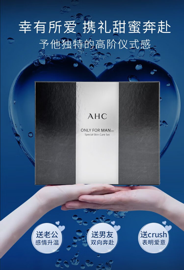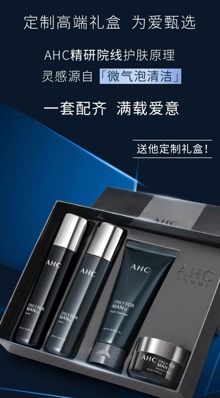 AHC Aihe Pure Men's Skin Care Water Emulsion Set Hydrating Moisturizing Cleanser Oil Control Gift Box Chinese Valentine's Day Gift TOP Zhenxuan Men's Three-piece Set