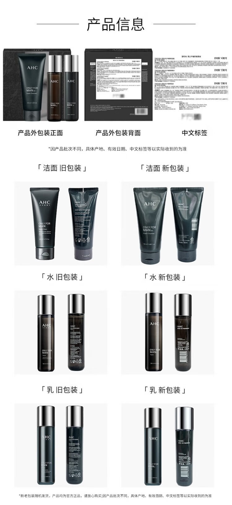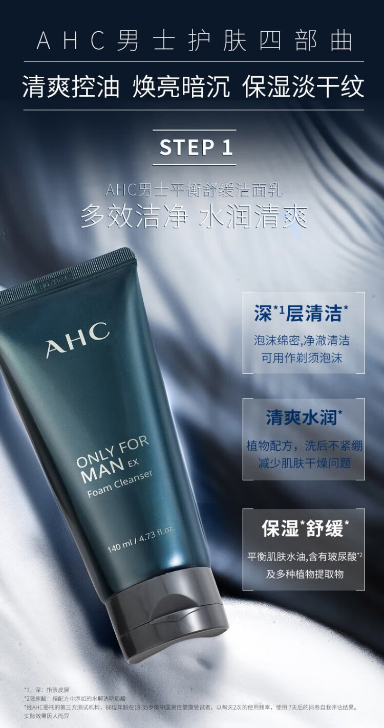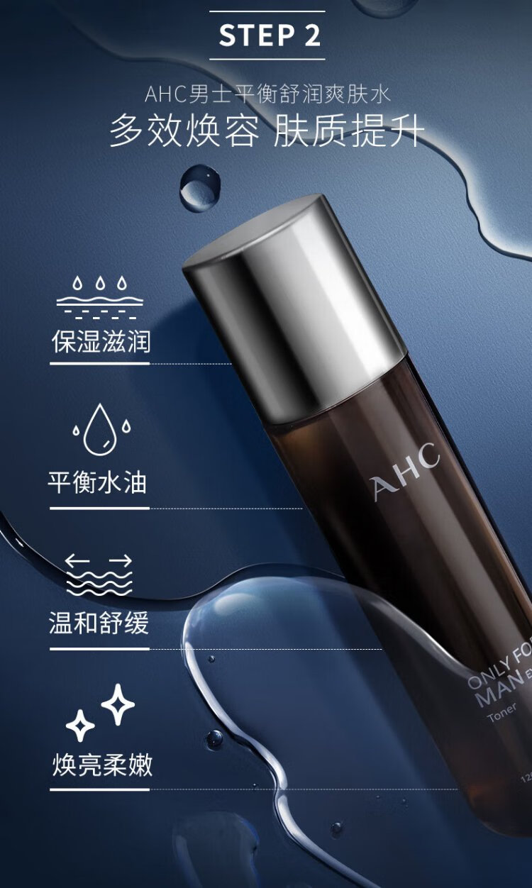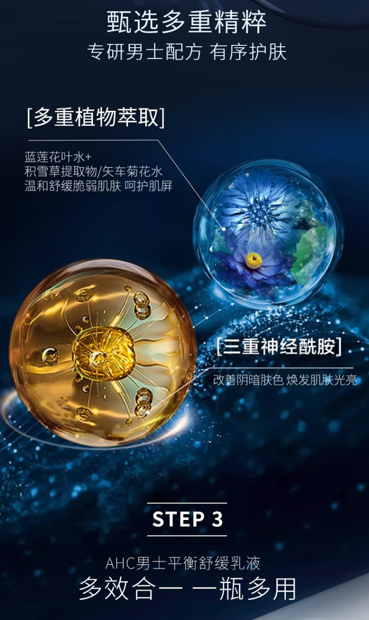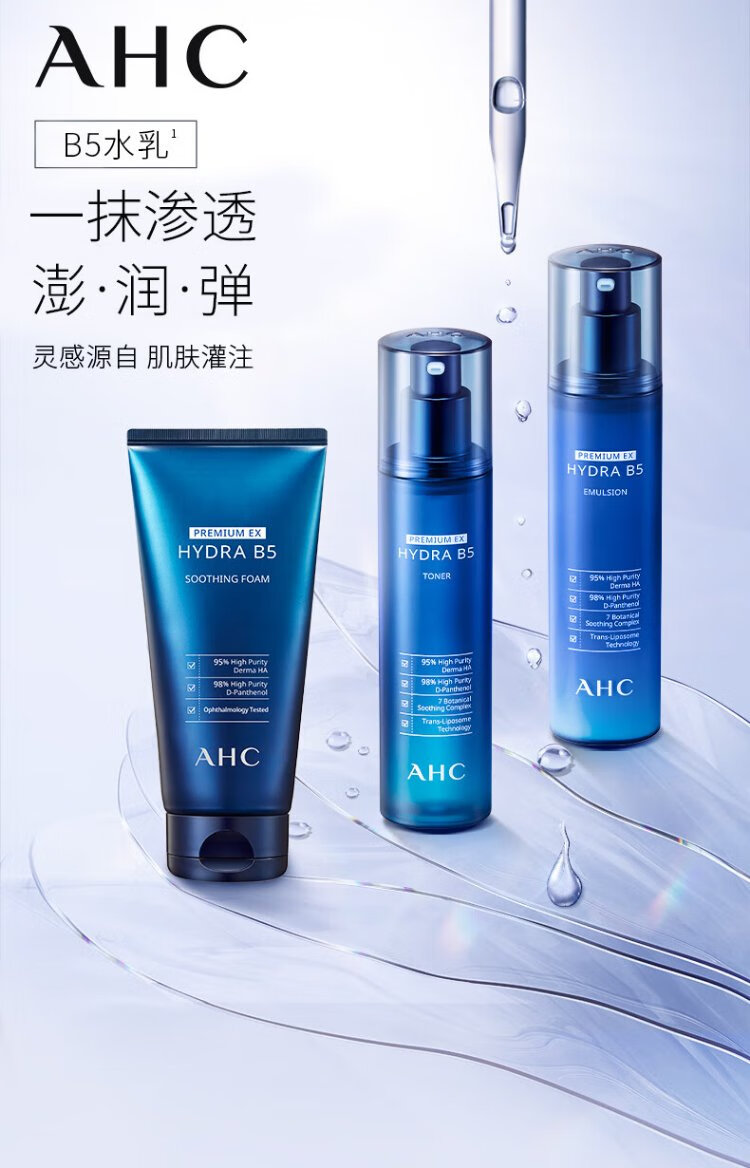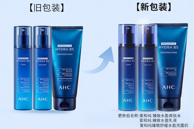 AHC Aihe Pure Men's Skin Care Water Emulsion Set Hydrating Moisturizing Cleanser Oil Control Gift Box Chinese Valentine's Day Gift TOP Zhenxuan Men's Three-piece Set