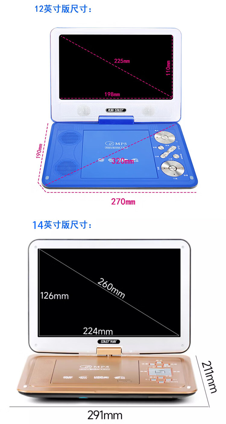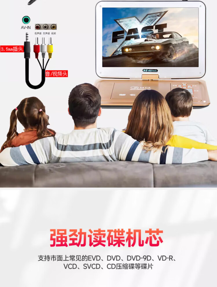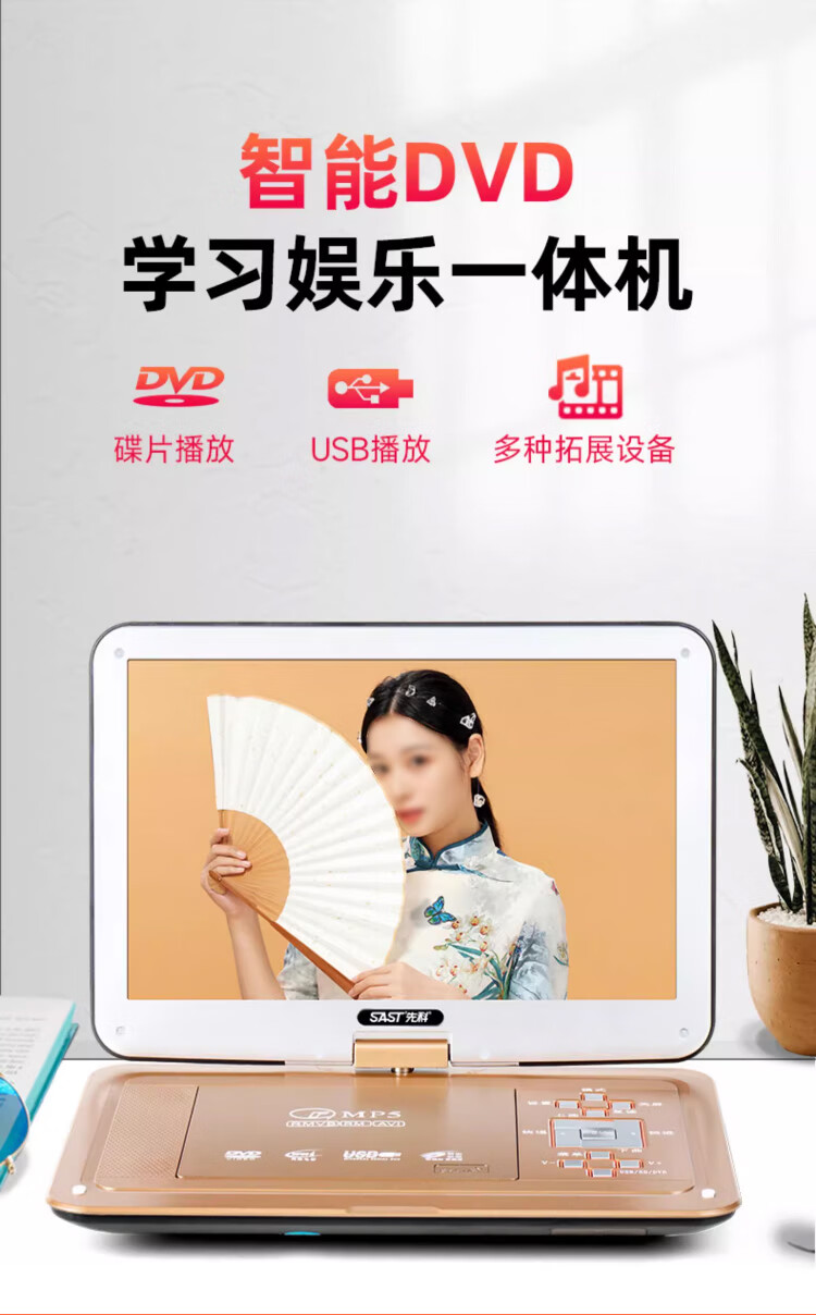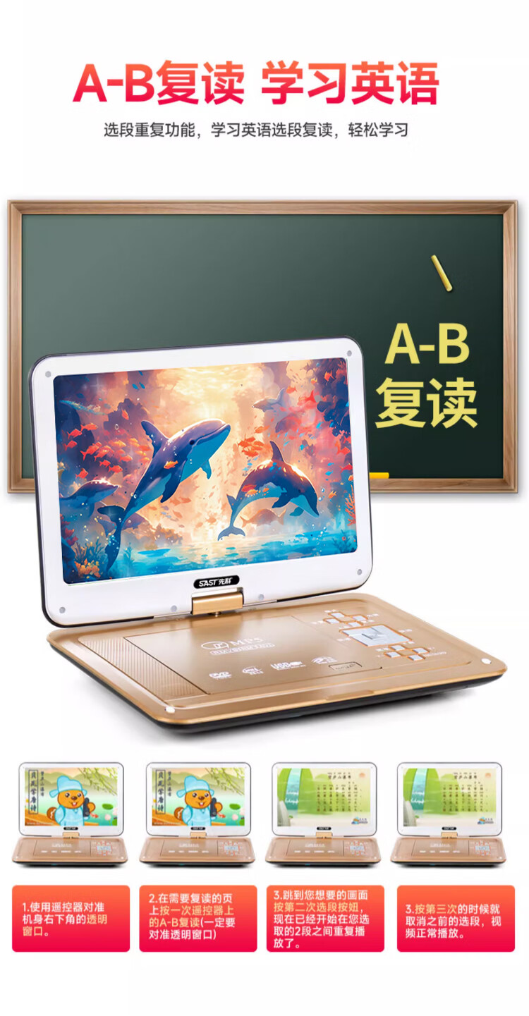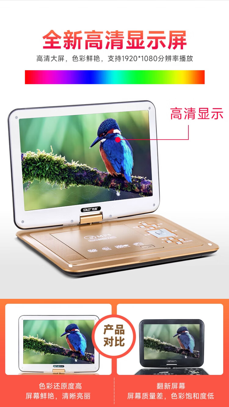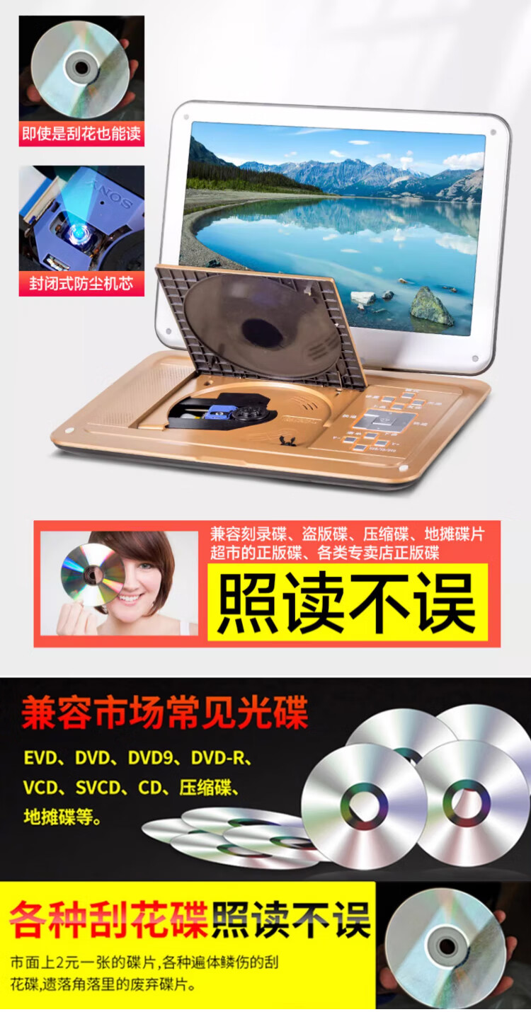 Xianke high-definition mobile DVD player children's learning disc player home portable vcd player CD video player for the elderly 12-inch regular version blue official standard