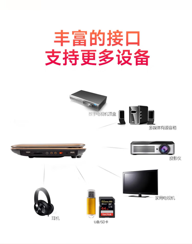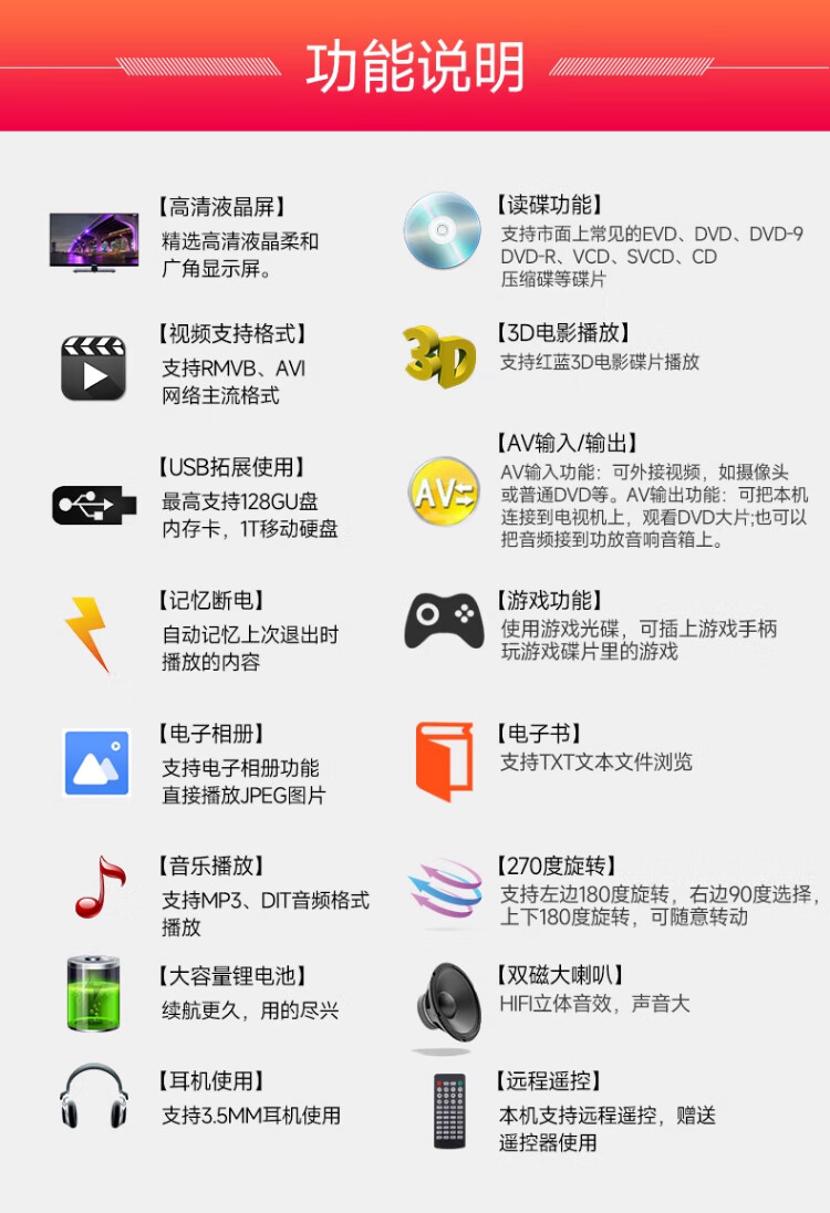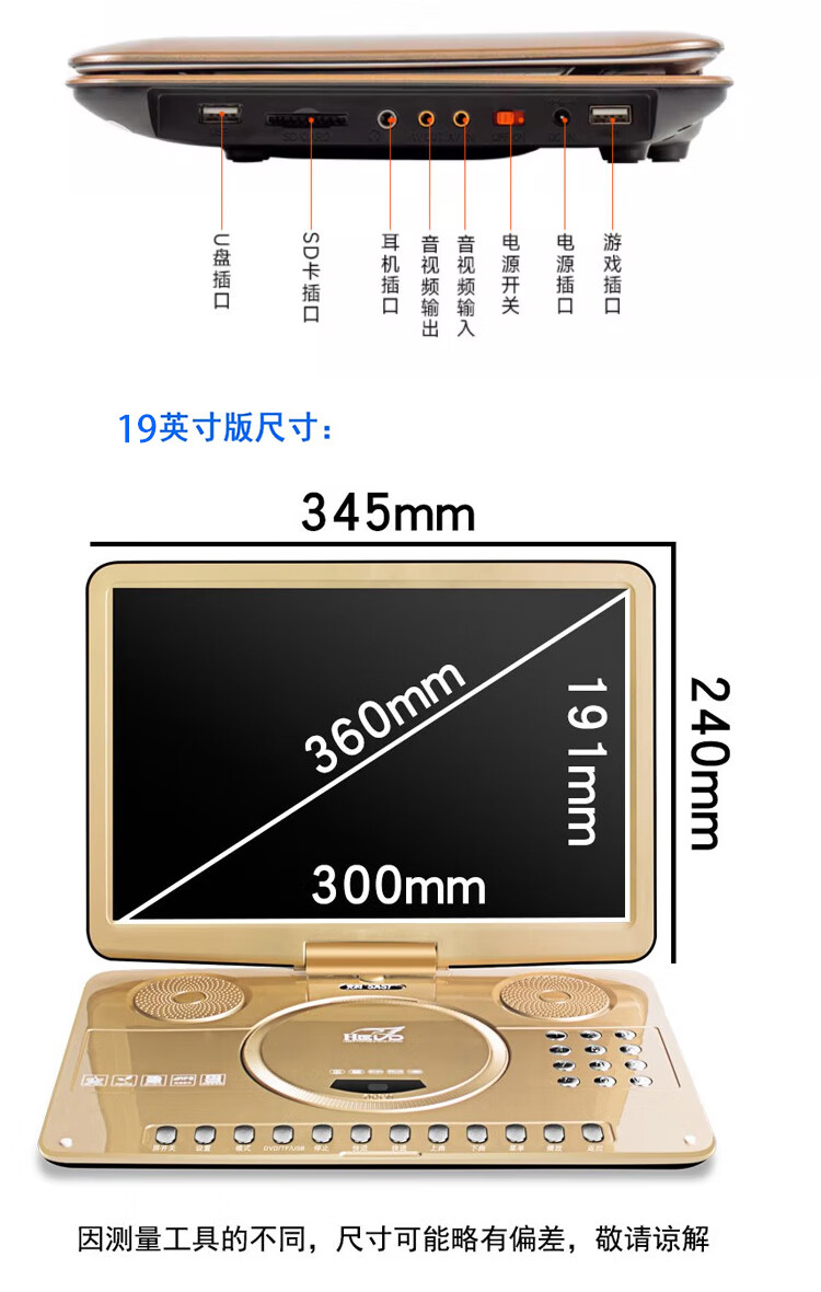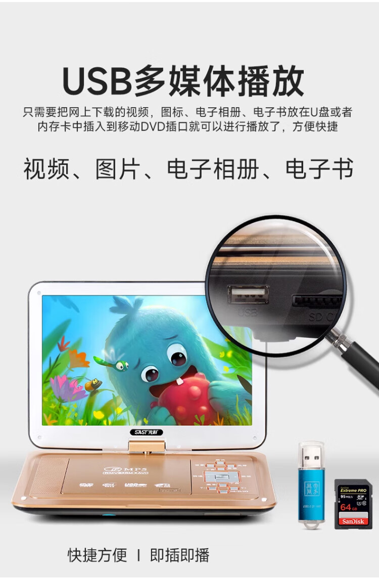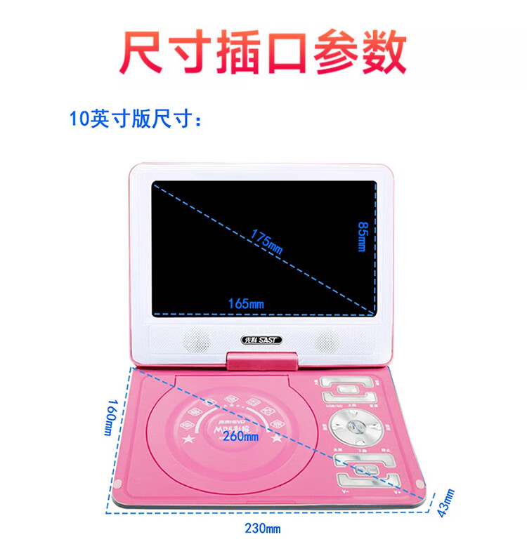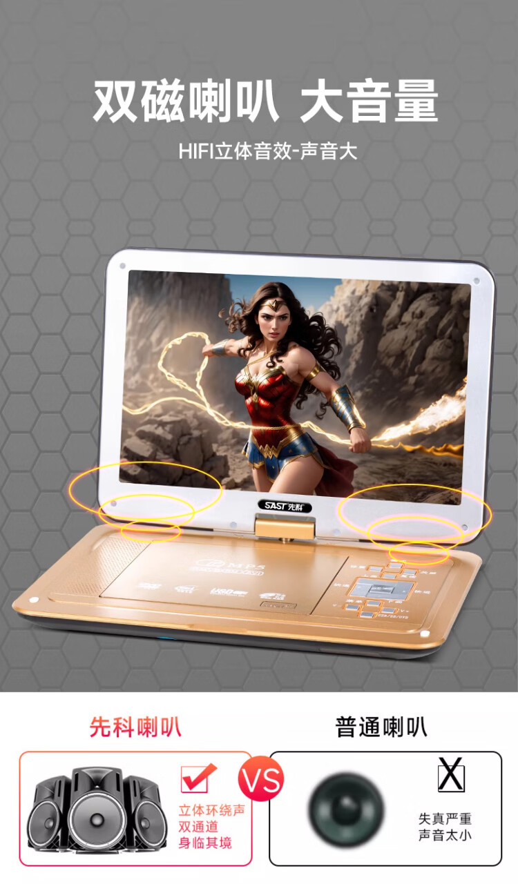 Xianke high-definition mobile DVD player children's learning disc player home portable vcd player CD video player for the elderly 12-inch regular version blue official standard