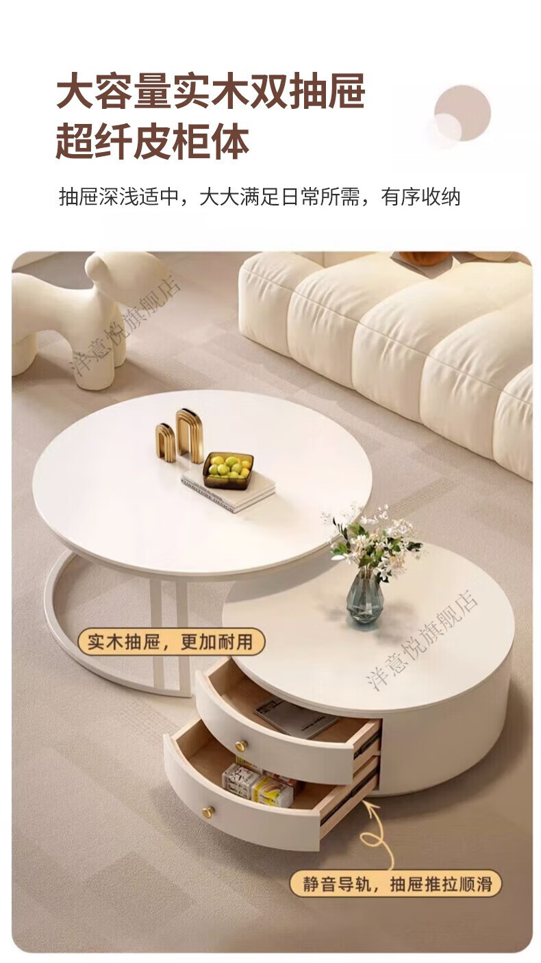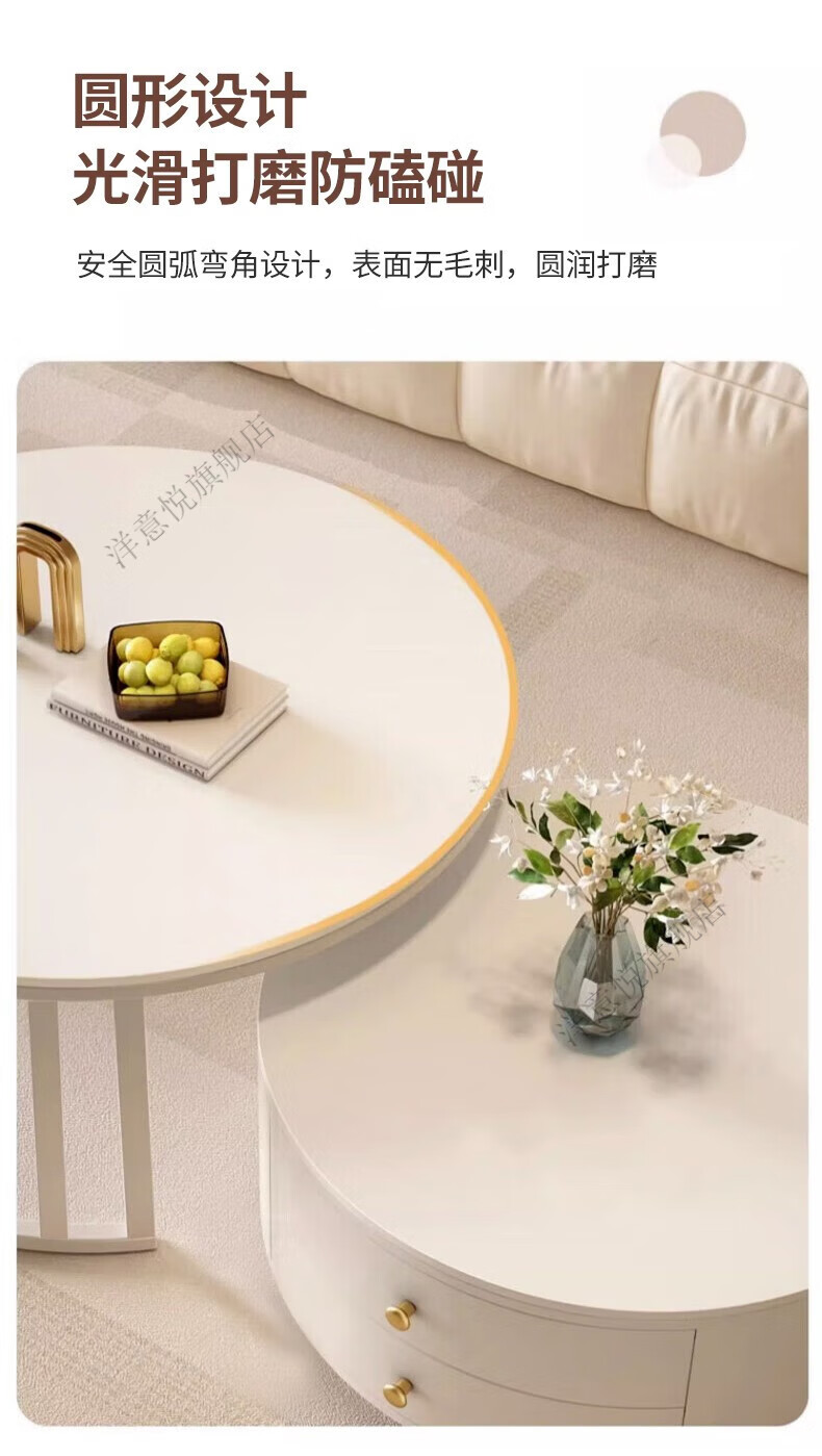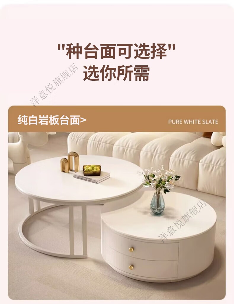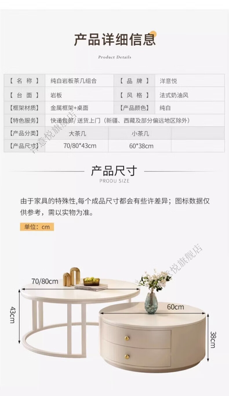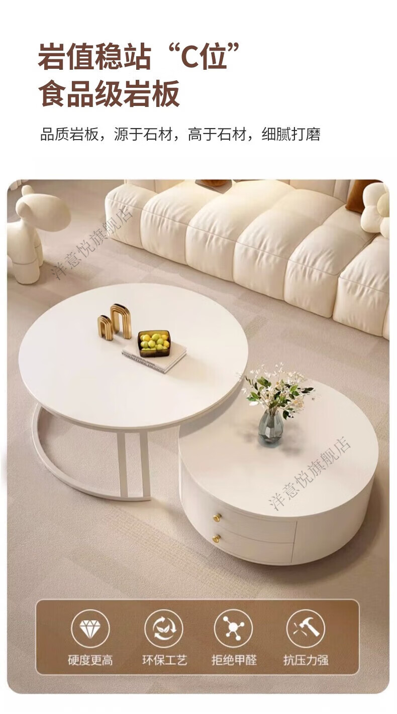 Yangyiyue cream style slate coffee table living room small apartment home simple modern small coffee table light luxury internet celebrity round coffee table 60 white rock + 80 pure white slate white frame white cabinet