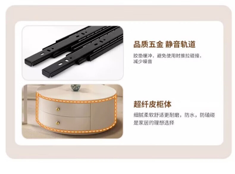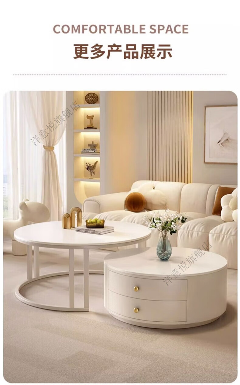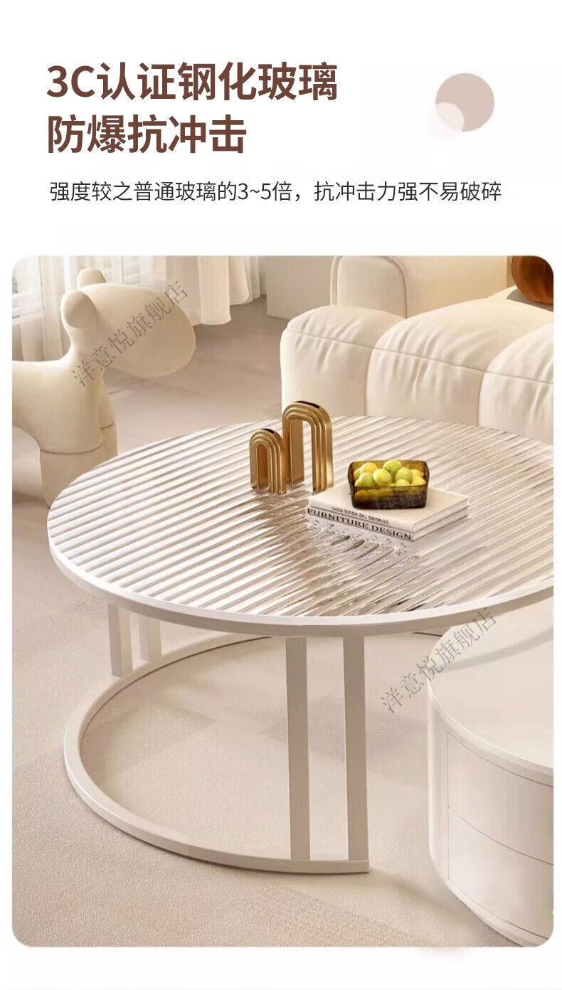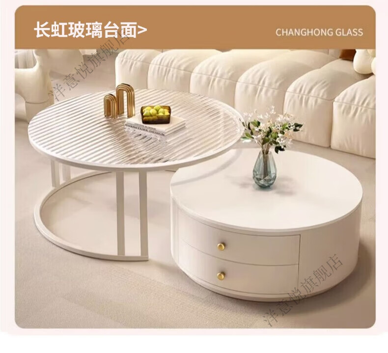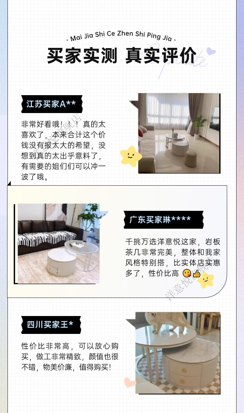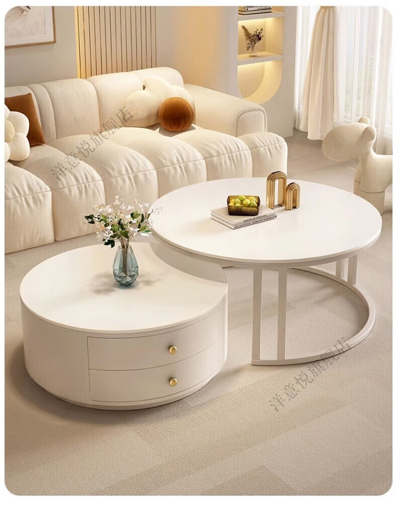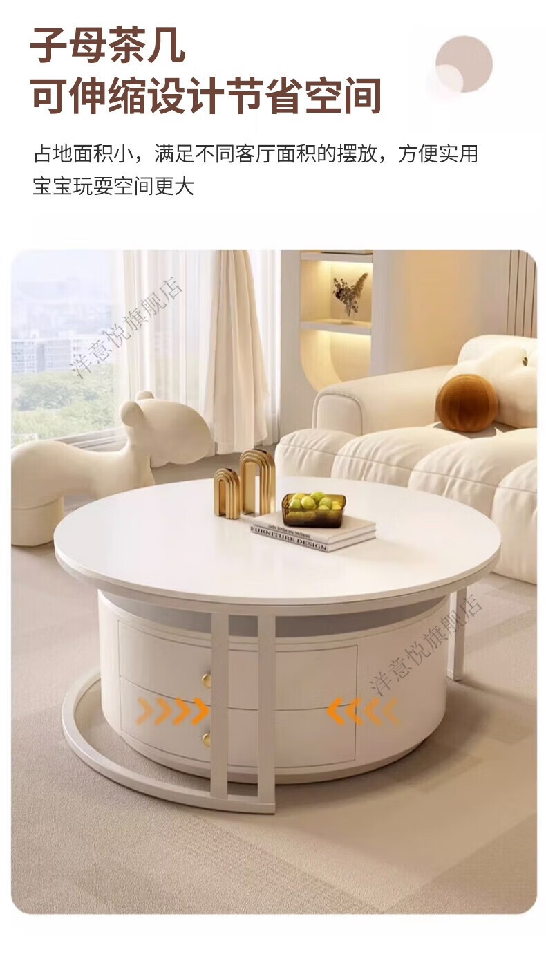Yangyiyue cream style slate coffee table living room small apartment home simple modern small coffee table light luxury internet celebrity round coffee table 60 white rock + 80 pure white slate white frame white cabinet