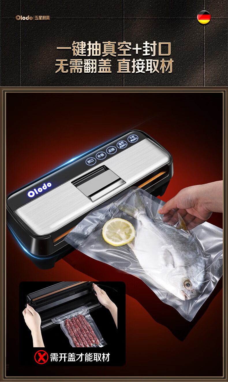 Oraldo German Oraldo vacuum sealing machine vacuum packaging machine household and commercial dry and wet dual-use large suction vacuum machine fully automatic fresh-keeping machine super double pump with external suction tube + vacuum bag