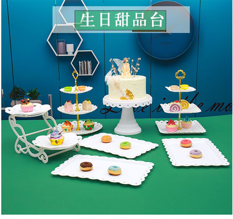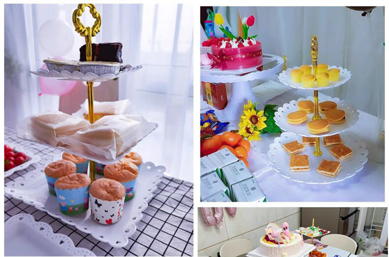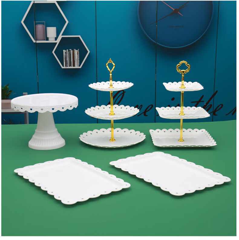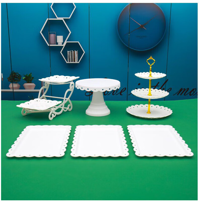 Lingyunhe Dessert Table Display Stand Afternoon Tea Dessert Stand Tea Break Setup Dessert Candy Plate Cake Tray Set Plastic Six-piece Set European Dessert Table Set 1 Set