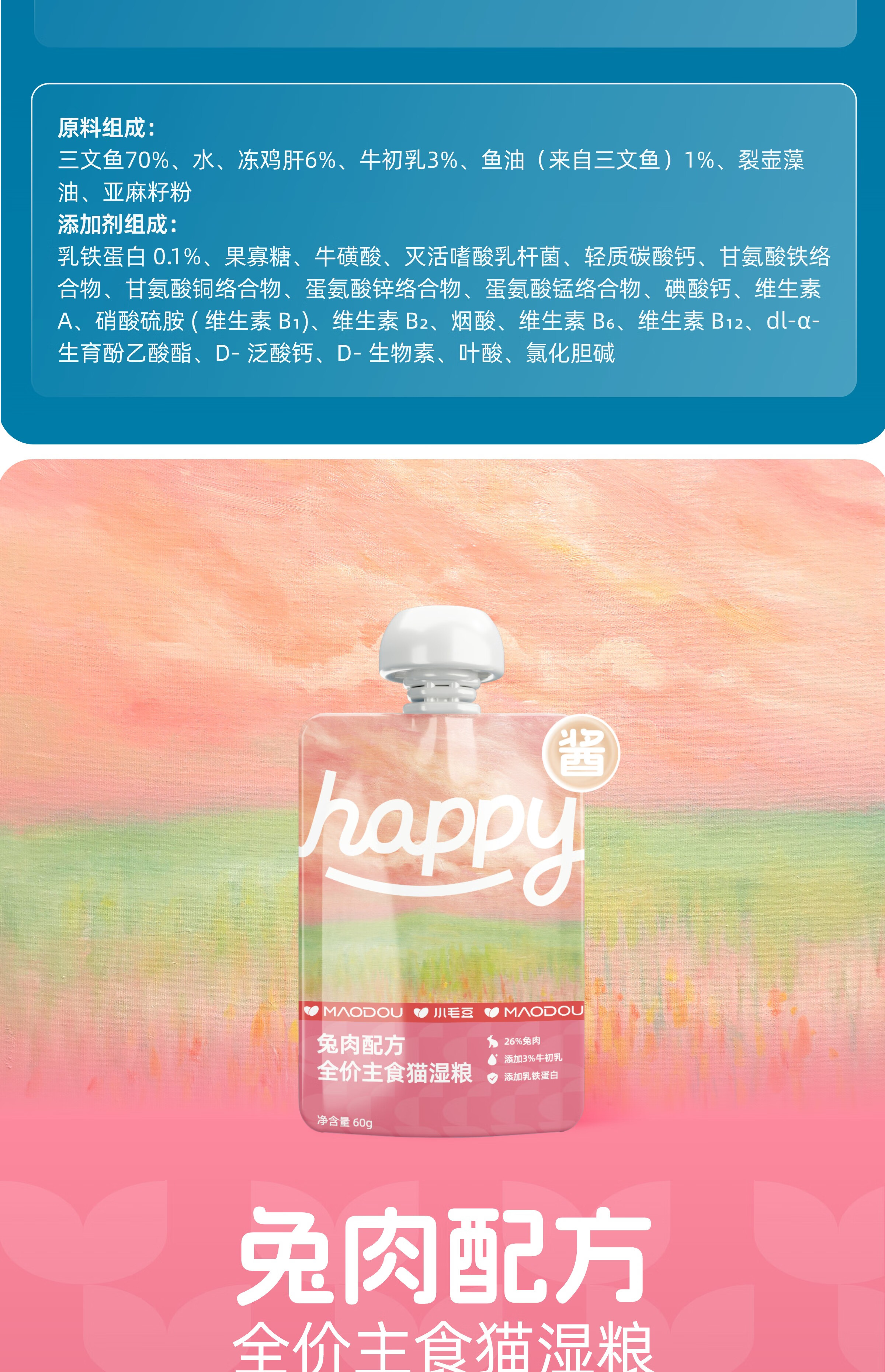 Small edamame happy sauce adult cats and kittens staple food sauce package cat wet food staple meal package cat staple food package nutritional wet food salmon formula 60g*6 pack
