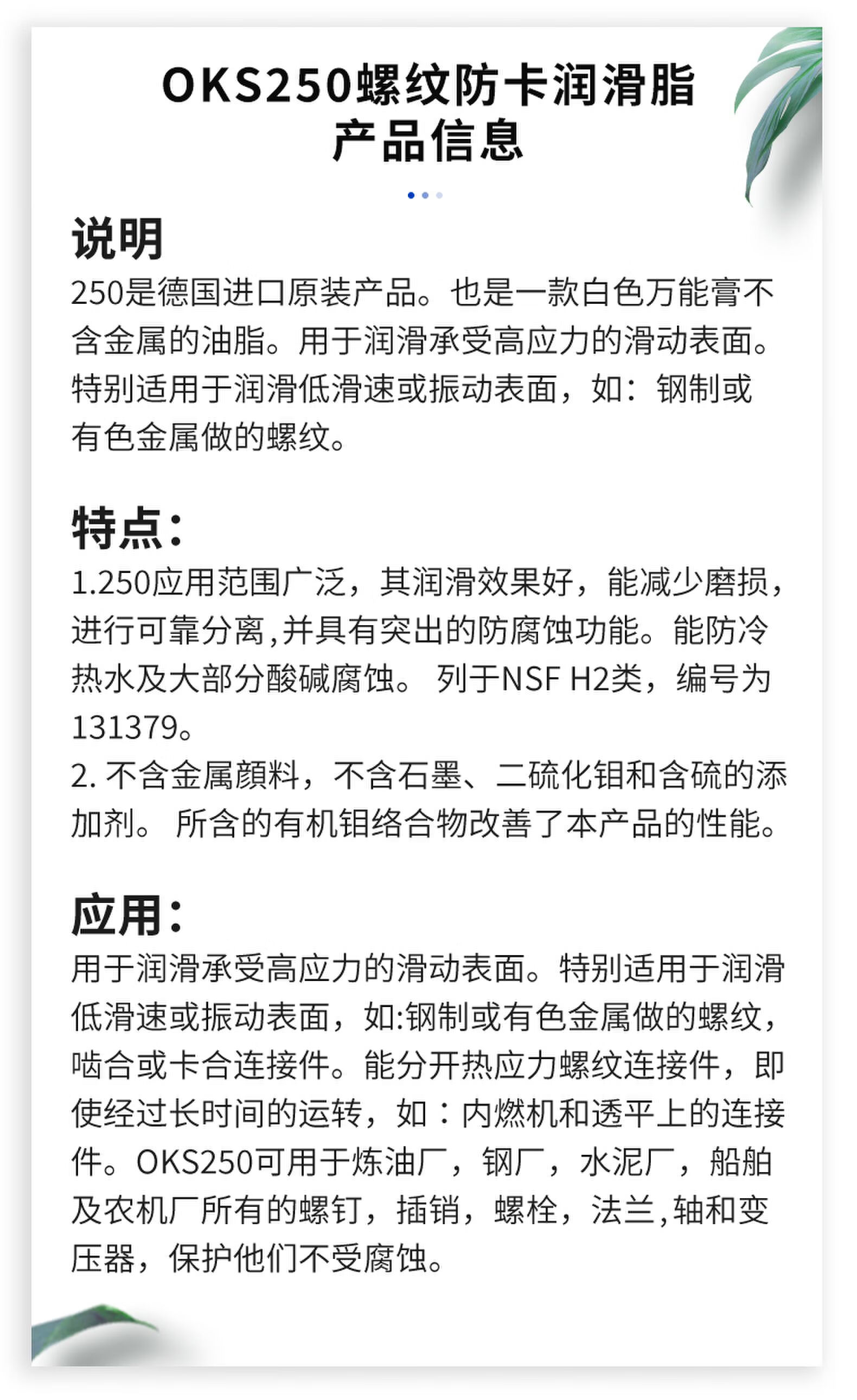 Jacking German original OKS250/2 OKS250 mold ejector oil high temperature resistant white oil grease