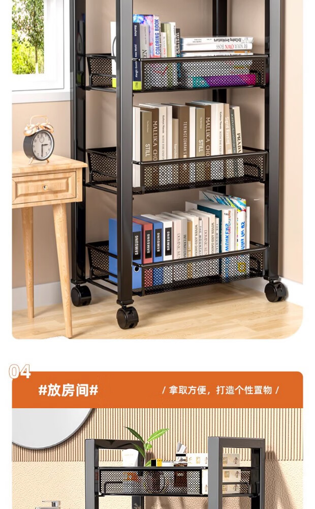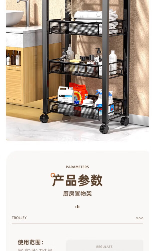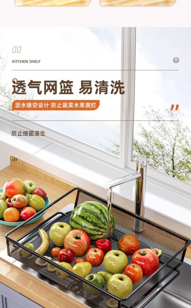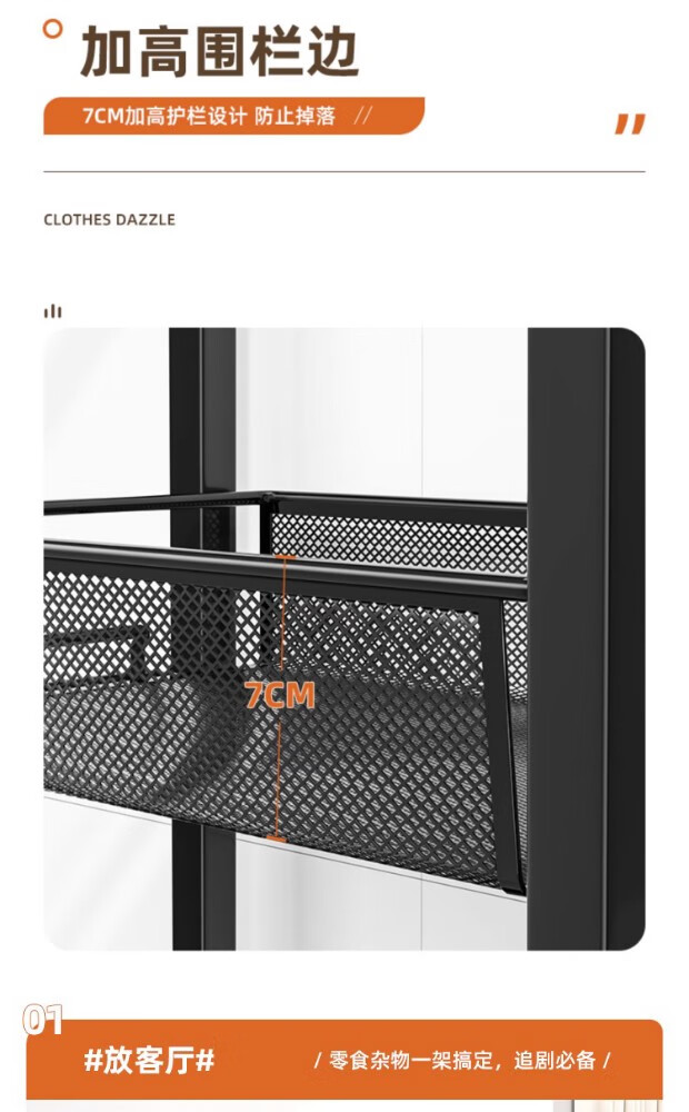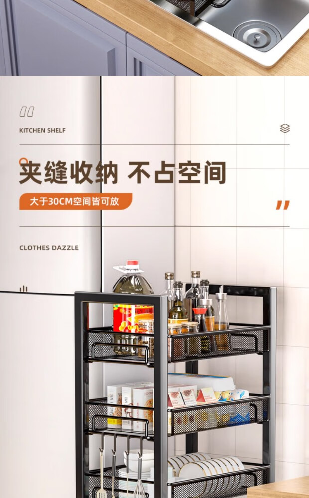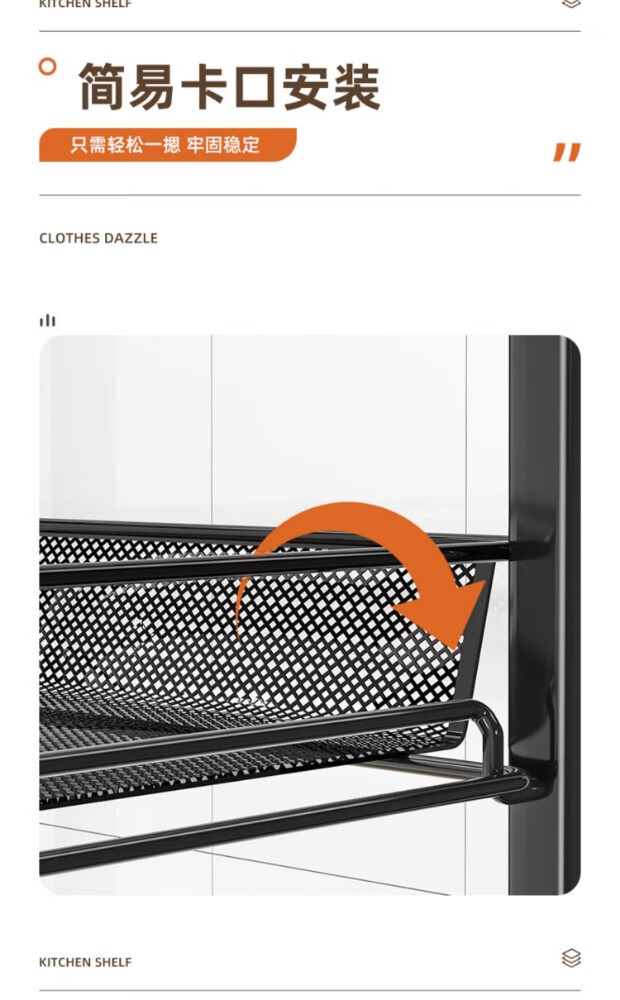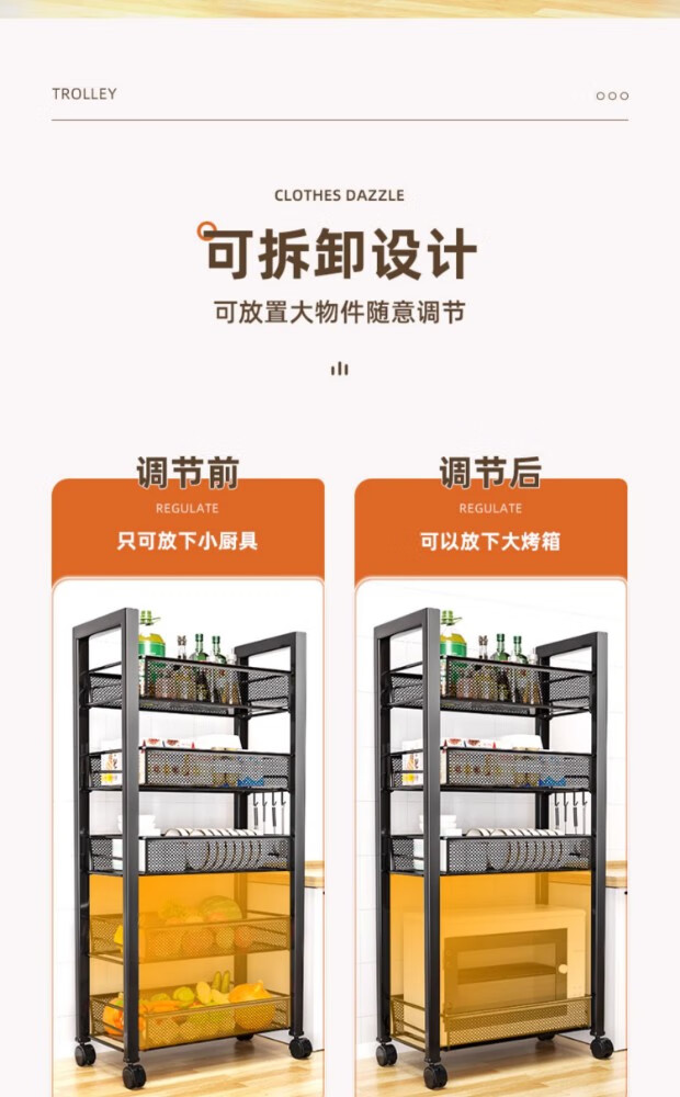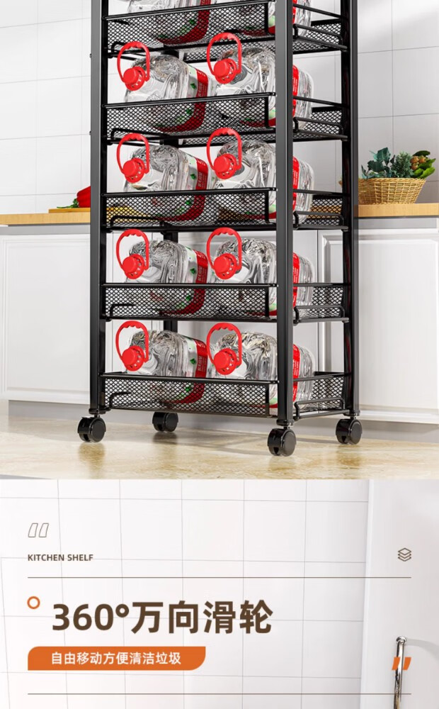 Qinwangge kitchen vegetable basket rack floor-standing multi-layer mobile household fruit and vegetable storage removable oven microwave pot rack three layers - two nets and one board standard model with hanging box
