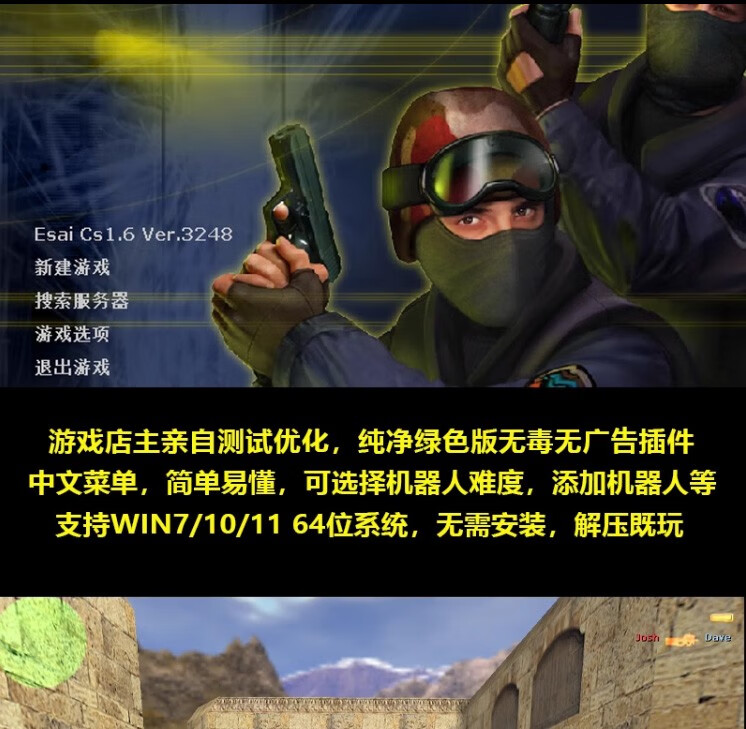 Counter-Strike CS1.5+CS1.6 Chinese version of computer LAN shooting class adds robot stand-alone game network disk download CS1.5+1.6 version