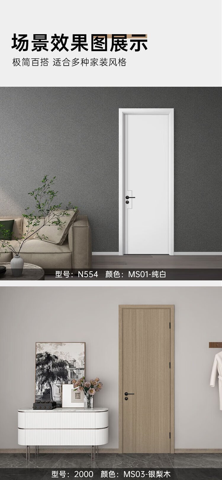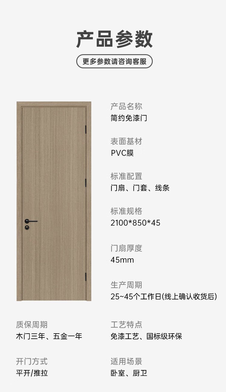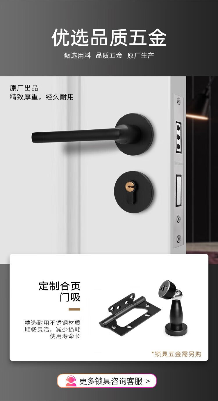 Maxim's wooden door bedroom door full set interior door environmentally friendly paint-free room door solid wood composite set door invisible door solid wood filling household door sliding door minimalist door custom door @001 N555-door leaf + double bag door cover + solid wood filling + magnetic lock hardware