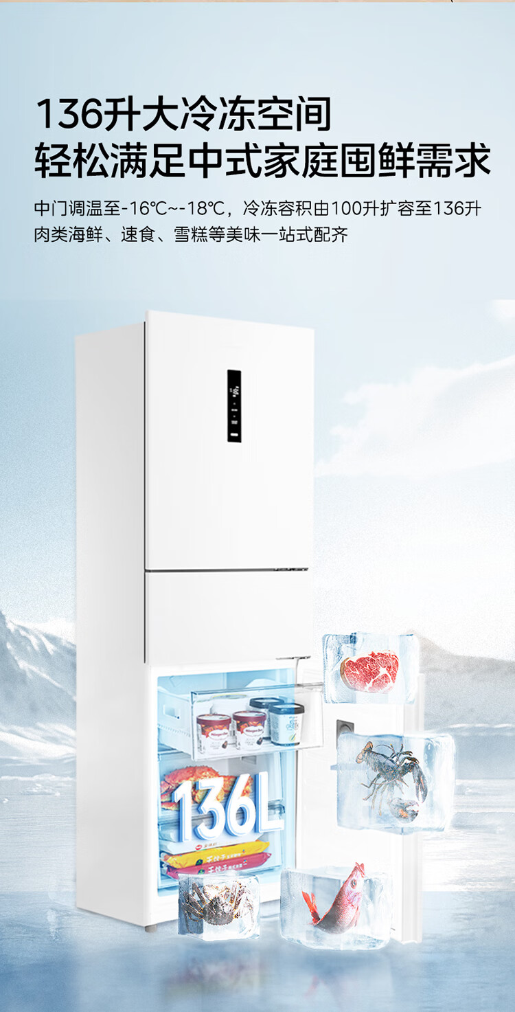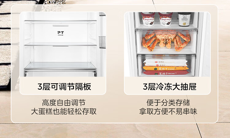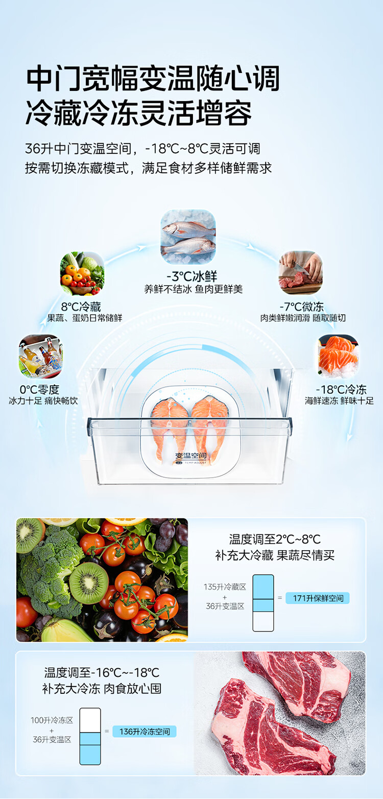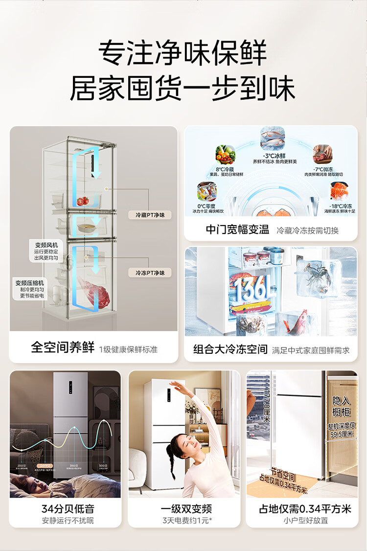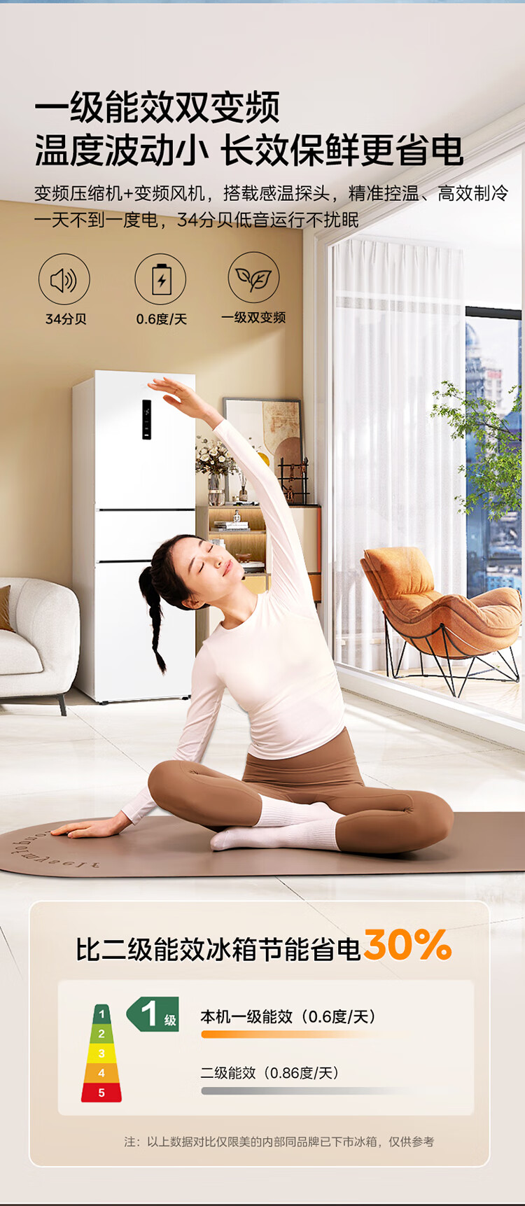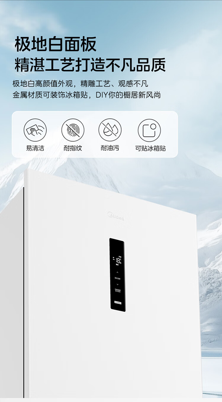 Midea 283 three-door large-capacity household smart refrigerator, first-class air-cooled, frost-free, variable frequency, energy-saving, low-noise, dual-purification, small rental refrigerator MR-283WTPZE Charcoal Gray-Moon Night