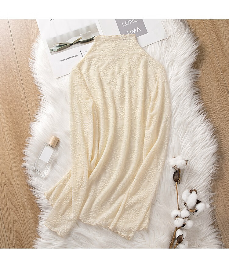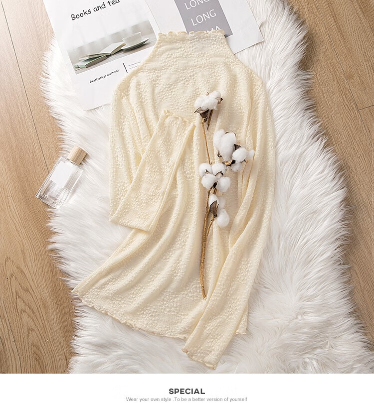Sibaishe bottoming shirt for women, which can be worn inside or outside. Western-style 2026 new long-sleeved top to cover the belly and look slimming. Small shirt. Apricot color. One size fits all.