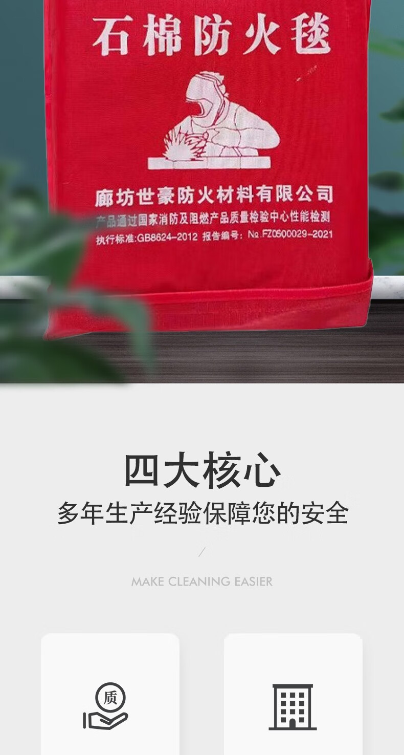 Shihao asbestos fire-extinguishing blanket asbestos fire-proof blanket dust-free blanket for gas station and petrochemical enterprise with good fire-extinguishing effect 1m*1m*2mm red cloth bag packaging