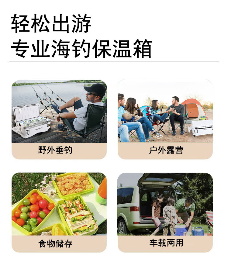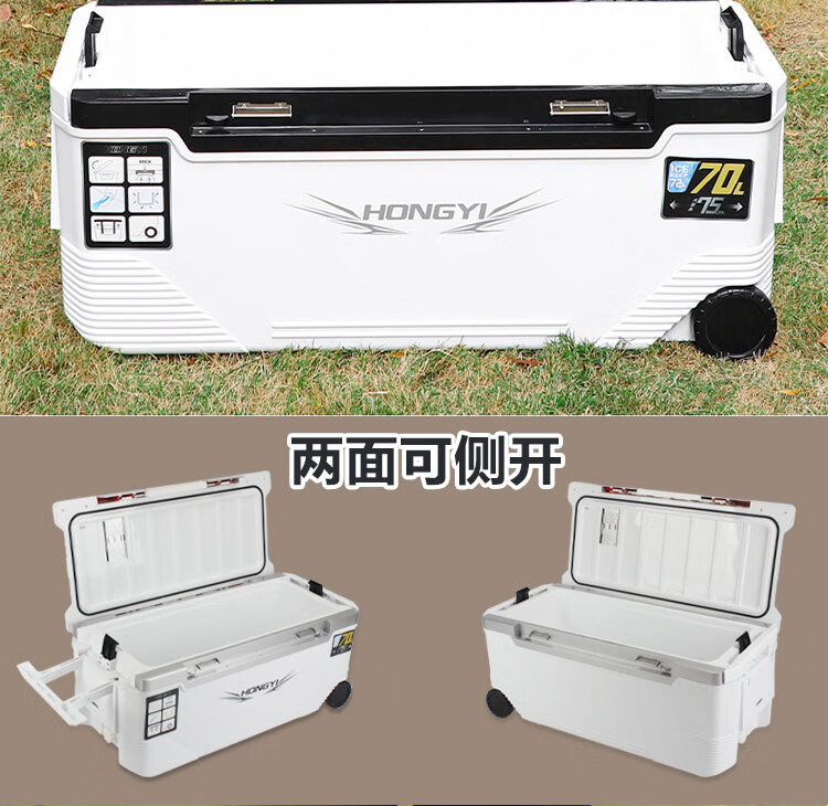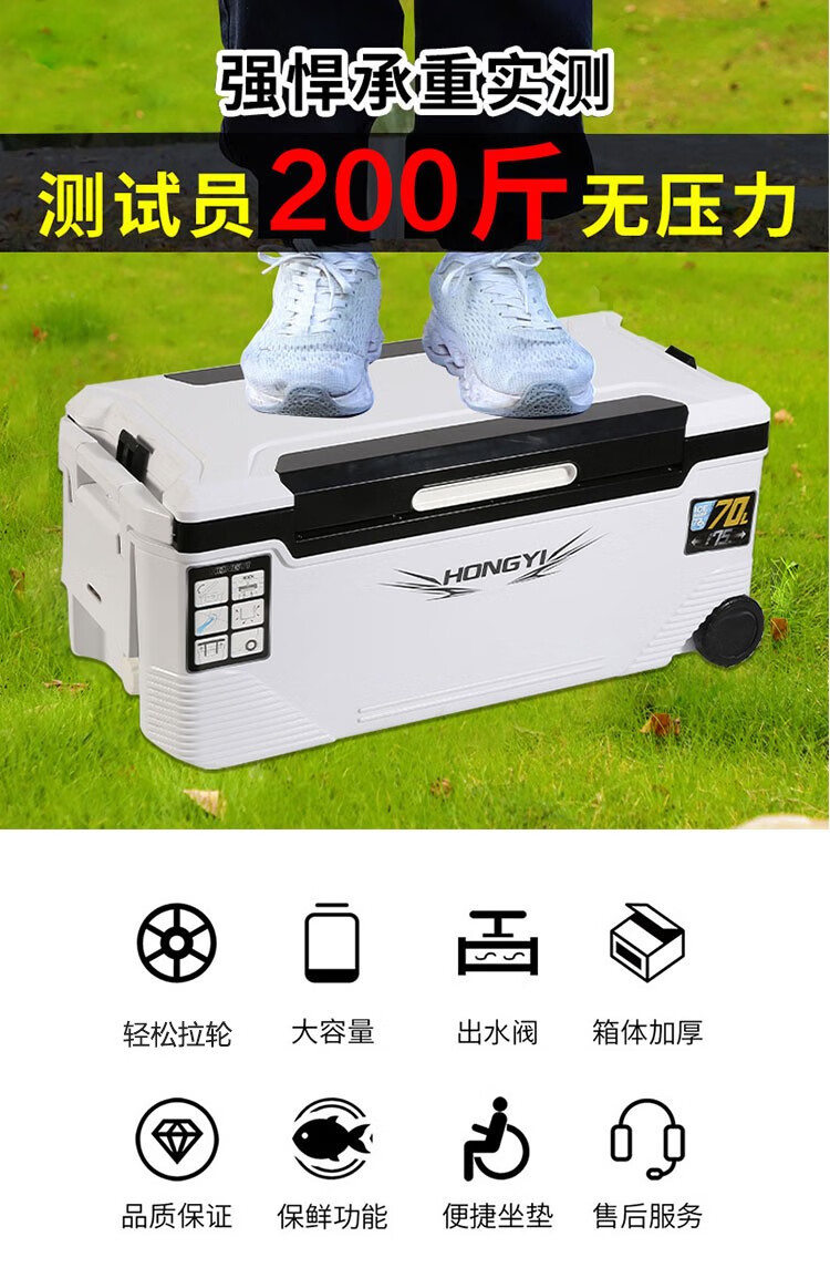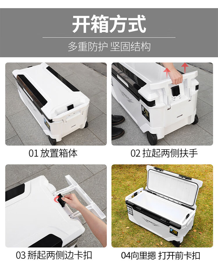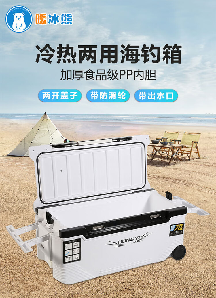 Warm Ice Bear 10-70-85L Portable Sea Fishing Box Insulated Box Refrigerator Box Fishing Special Cooling Outdoor Car Fresh Box PU 36L White Strap Storage Box + Water Outlet Wheel