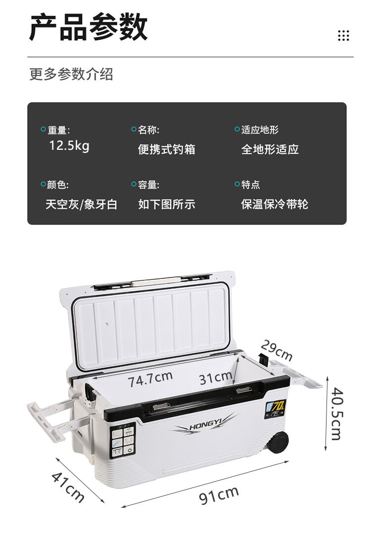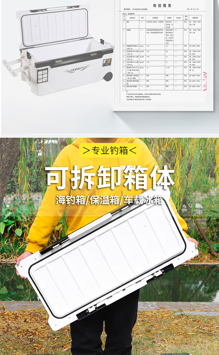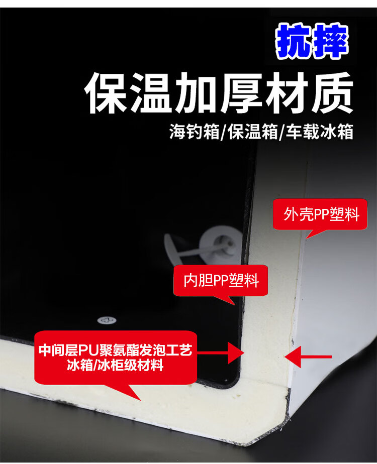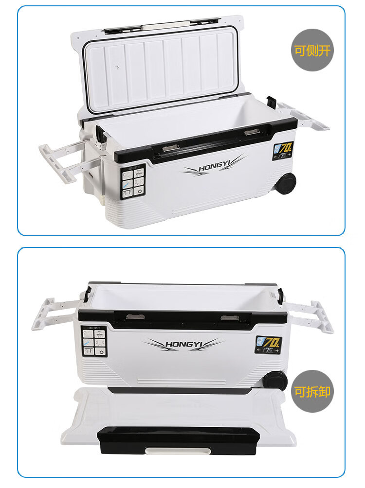 Warm Ice Bear 10-70-85L Portable Sea Fishing Box Insulated Box Refrigerator Box Fishing Special Cooling Outdoor Car Fresh Box PU 36L White Strap Storage Box + Water Outlet Wheel