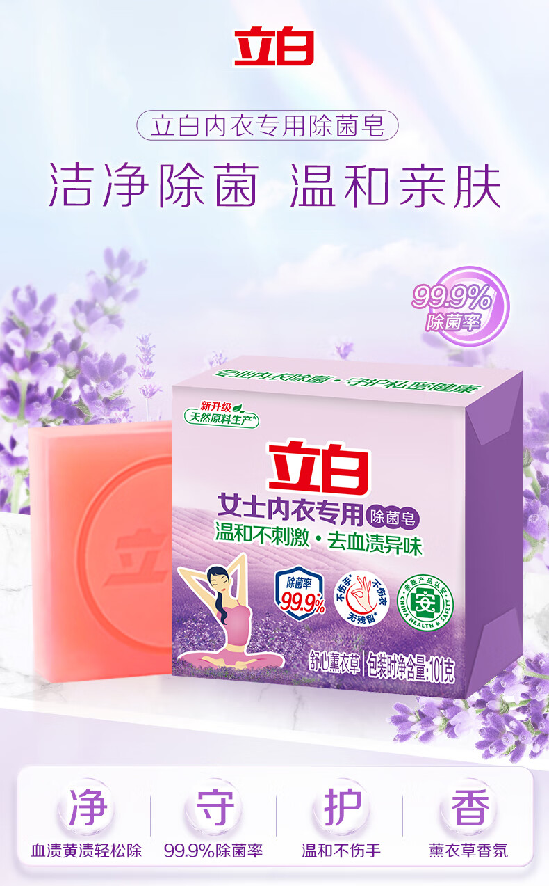 Liby special antibacterial soap for underwear, lavender scented soap, suitable for close-fitting clothing, durable, gentle and non-hurt for home use, lavender underwear soap 101g*1 piece