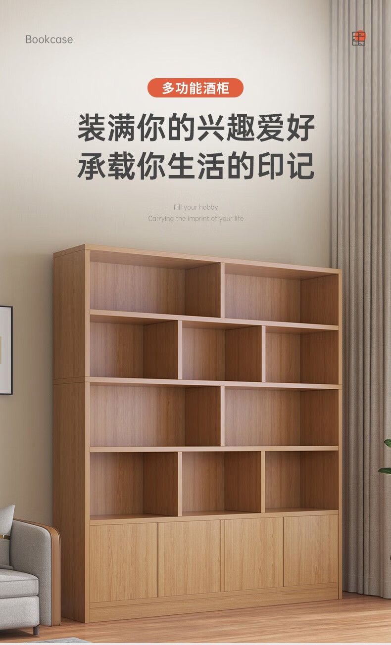 Red Ink Craftsman Wine Cabinet Solid Wood Living Room Wall Display Cabinet Porch Cabinet Partition Cabinet Red Wine Cabinet Simple Multi-Function Storage Cabinet Two Doors | Wild Oak Color 80*24*180