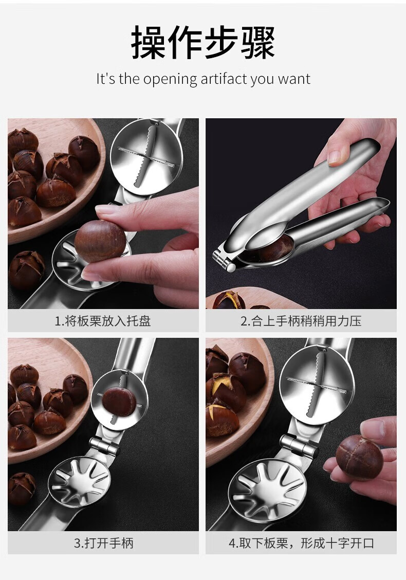 Kangzhiban chestnut opener stainless steel cross chestnut clip chestnut peeler walnut clip chestnut clip opener small tool stainless steel chestnut opener 2 pack