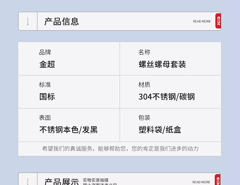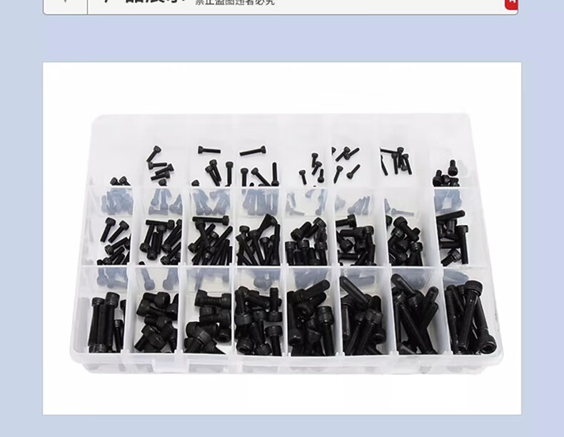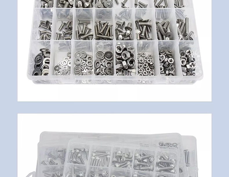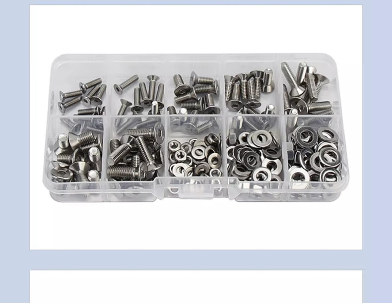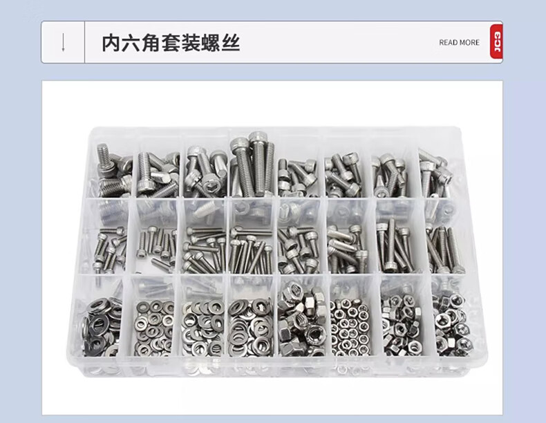 Jinchao 304 stainless steel hexagonal socket bolts, nuts and gaskets set 12.9 grade hexagonal cup head box screws 304 cup head hexagonal 24 grid large box set