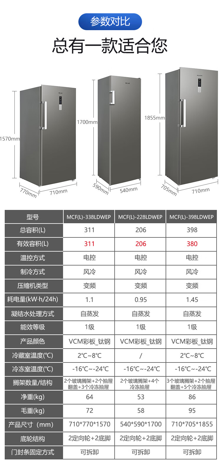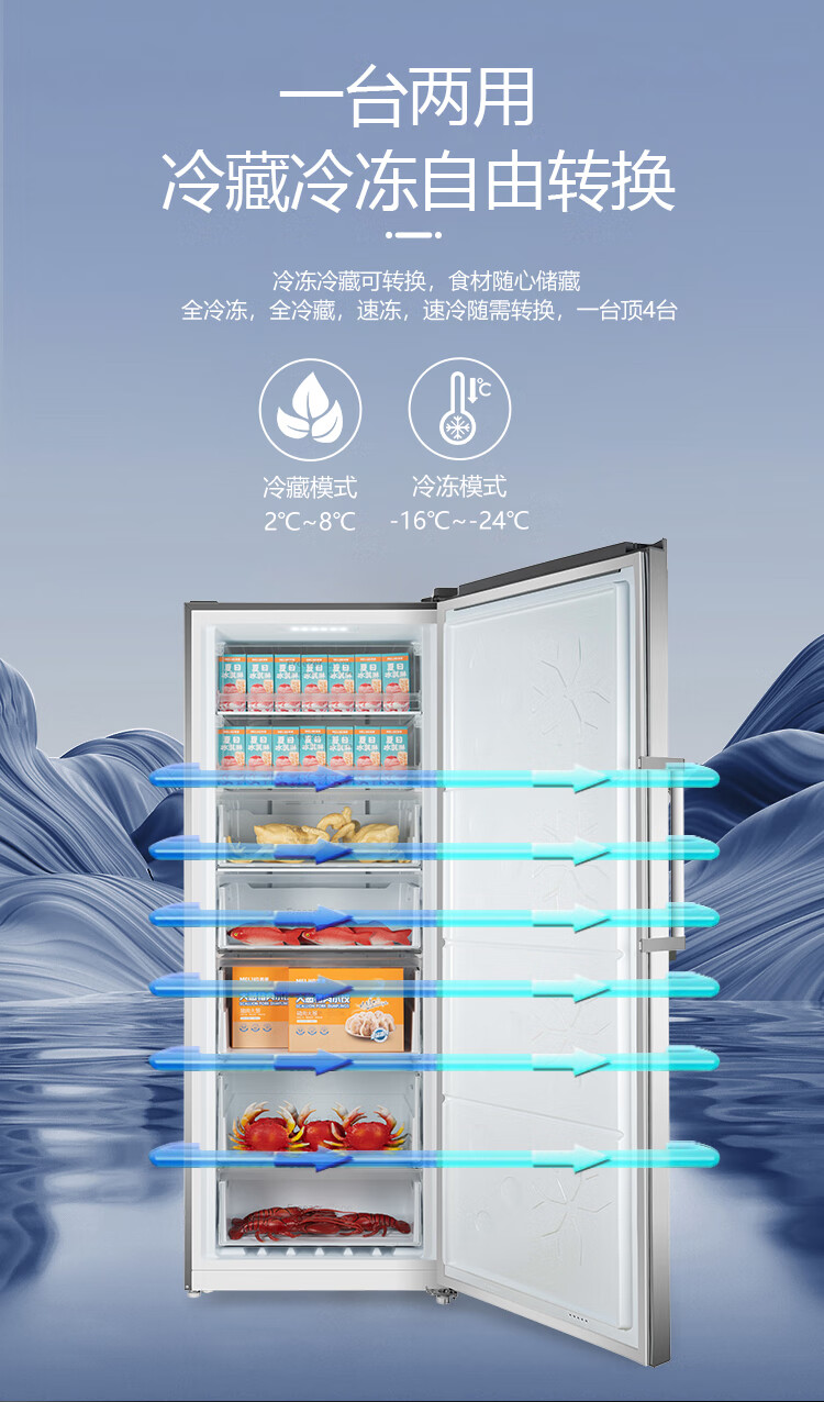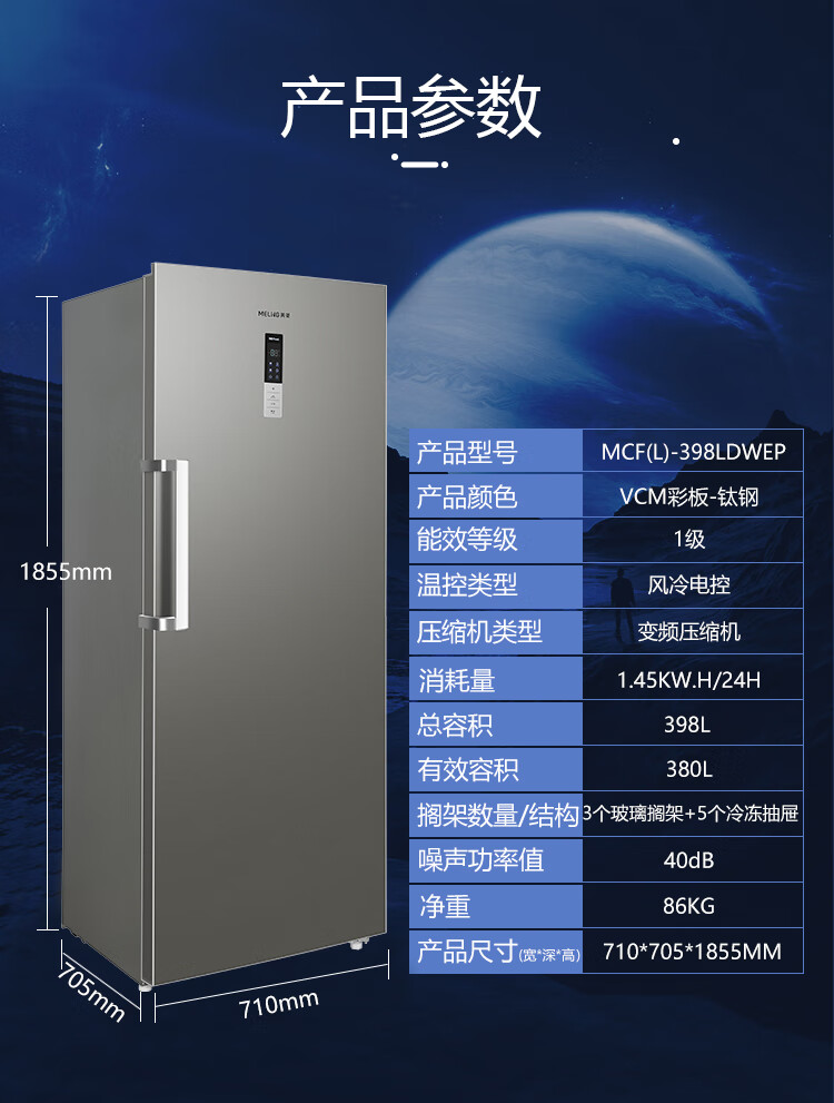 Meiling first-class air-cooled frequency conversion丨Meiling vertical freezer 206/311/380 liters commercial drawer shelf large-capacity refrigeration and freezing conversion cabinet computer temperature control frequency conversion frost-free first-class frequency conversion air-cooled frost-free 7-layer large capacity 380 liters