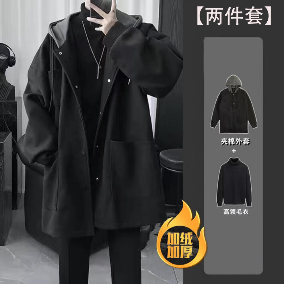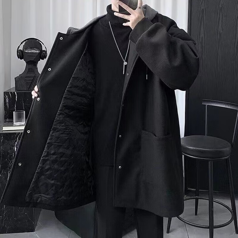Gxmy mid-length jacket men's casual suit autumn and winter handsome clothes for teenagers men's three-piece suit black jacket single jacket XL recommended 125-140 pounds