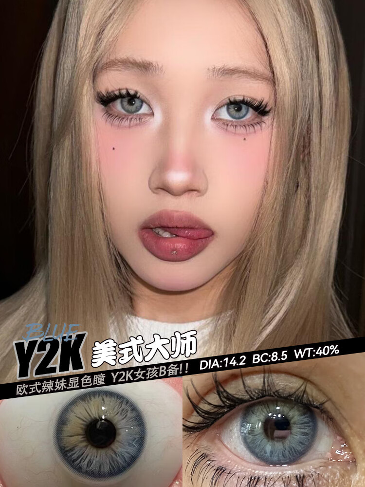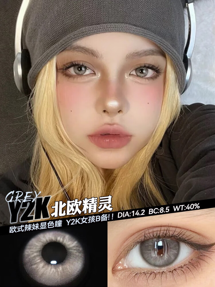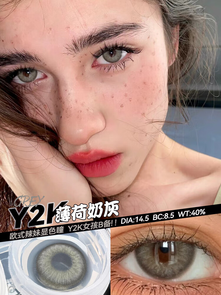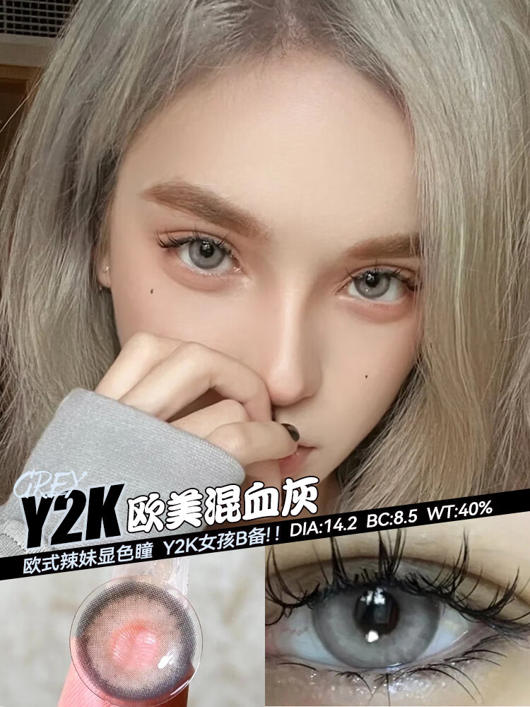 Han Jier European and American mixed-race contact lenses half-yearly disposable 2 pieces gray large diameter color cos green blue contact lenses genuine European and American gray-14.2-L05 0 degrees