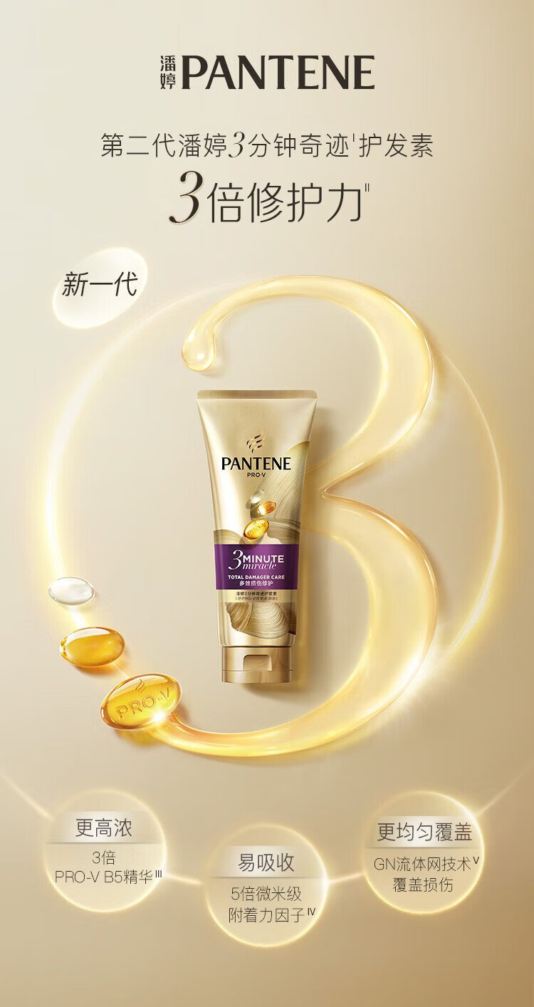 Pantene 3-minute miracle multi-effect repair conditioner for men and women, conditioner, essence for dry and frizzy hair, taster pack, 3-minute shampoo 50g