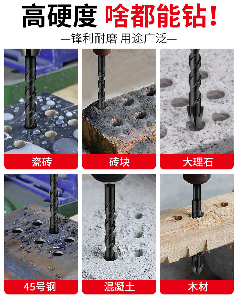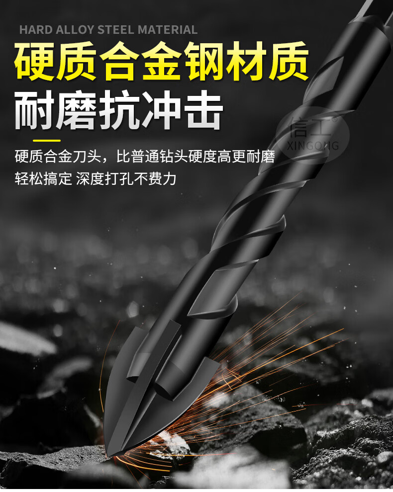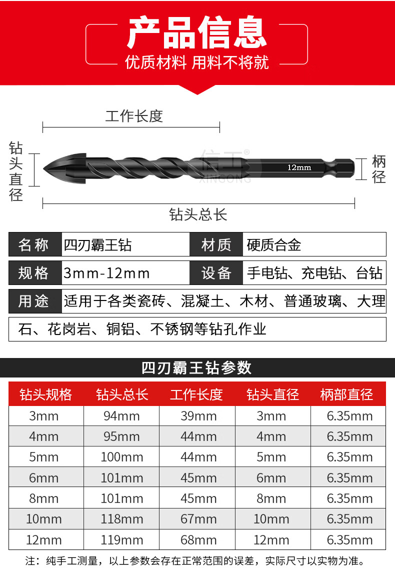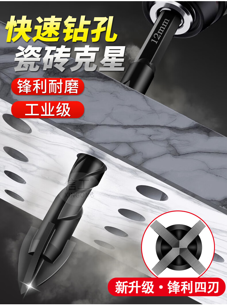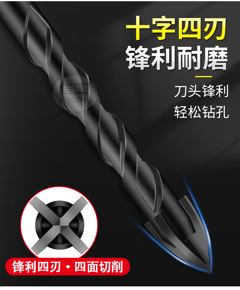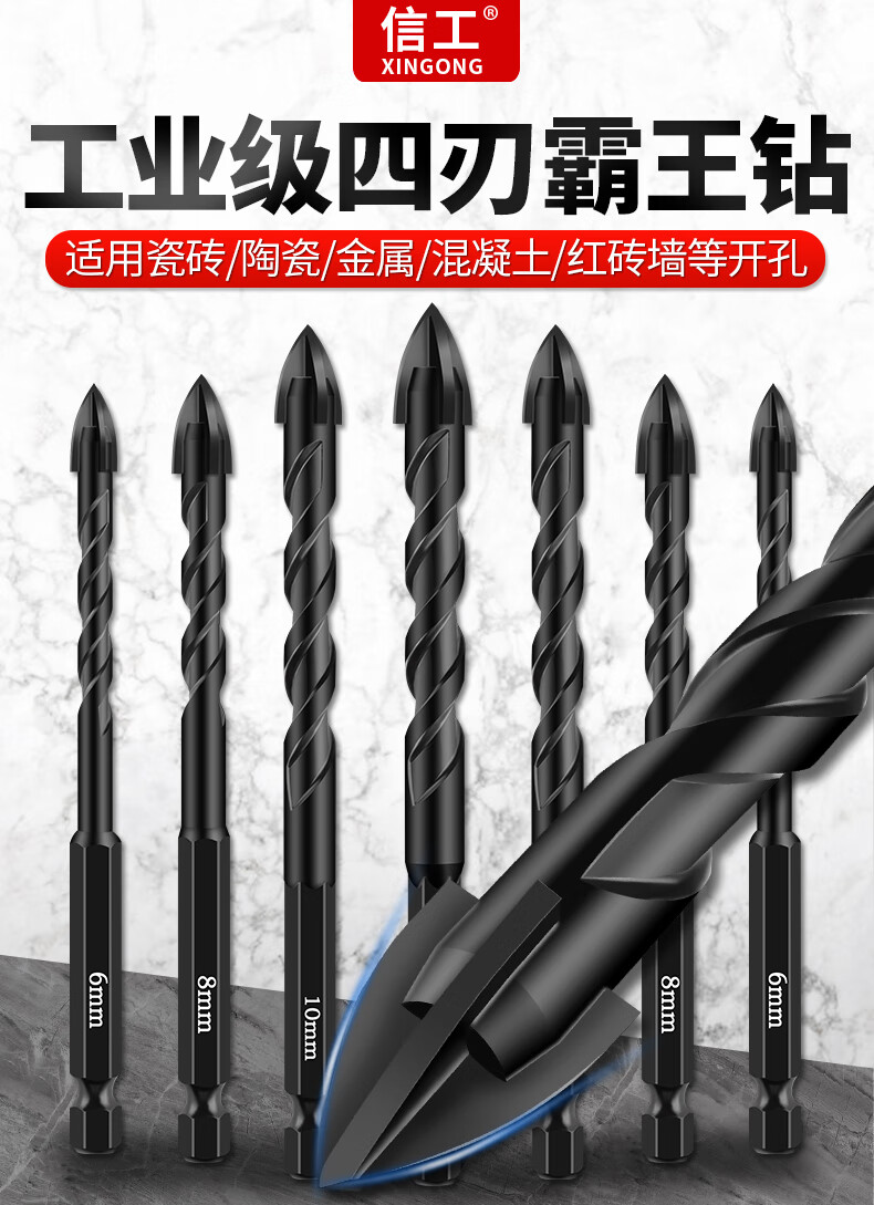 XinGong ceramic tile drilling bit four-edged overlord drill bit concrete cement special hand drill drilling alloy drill bit 3mm (single)