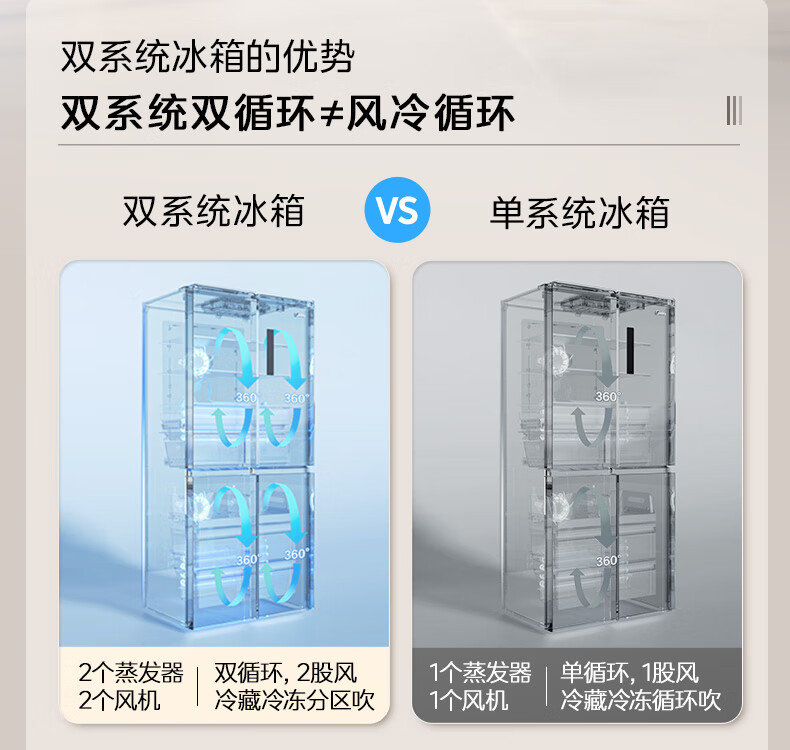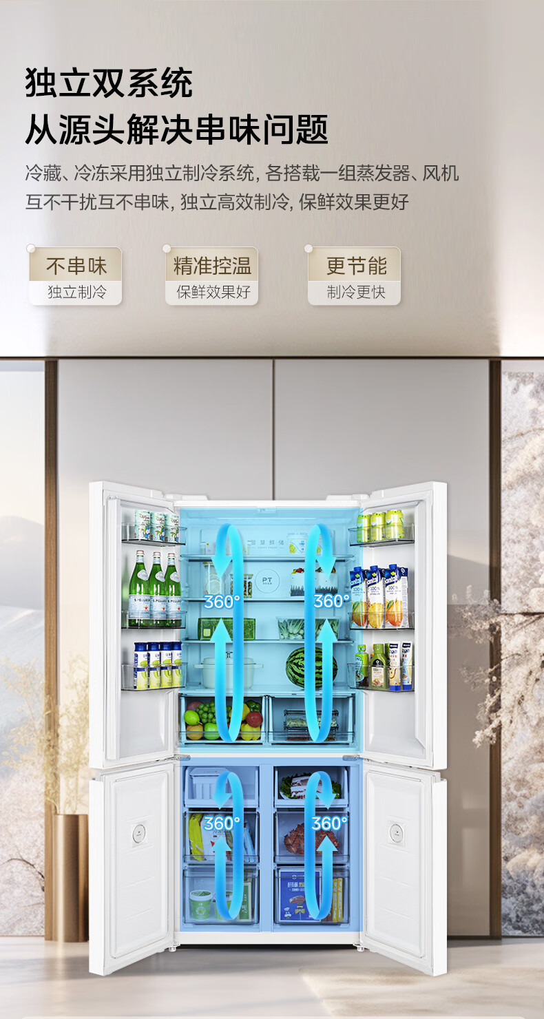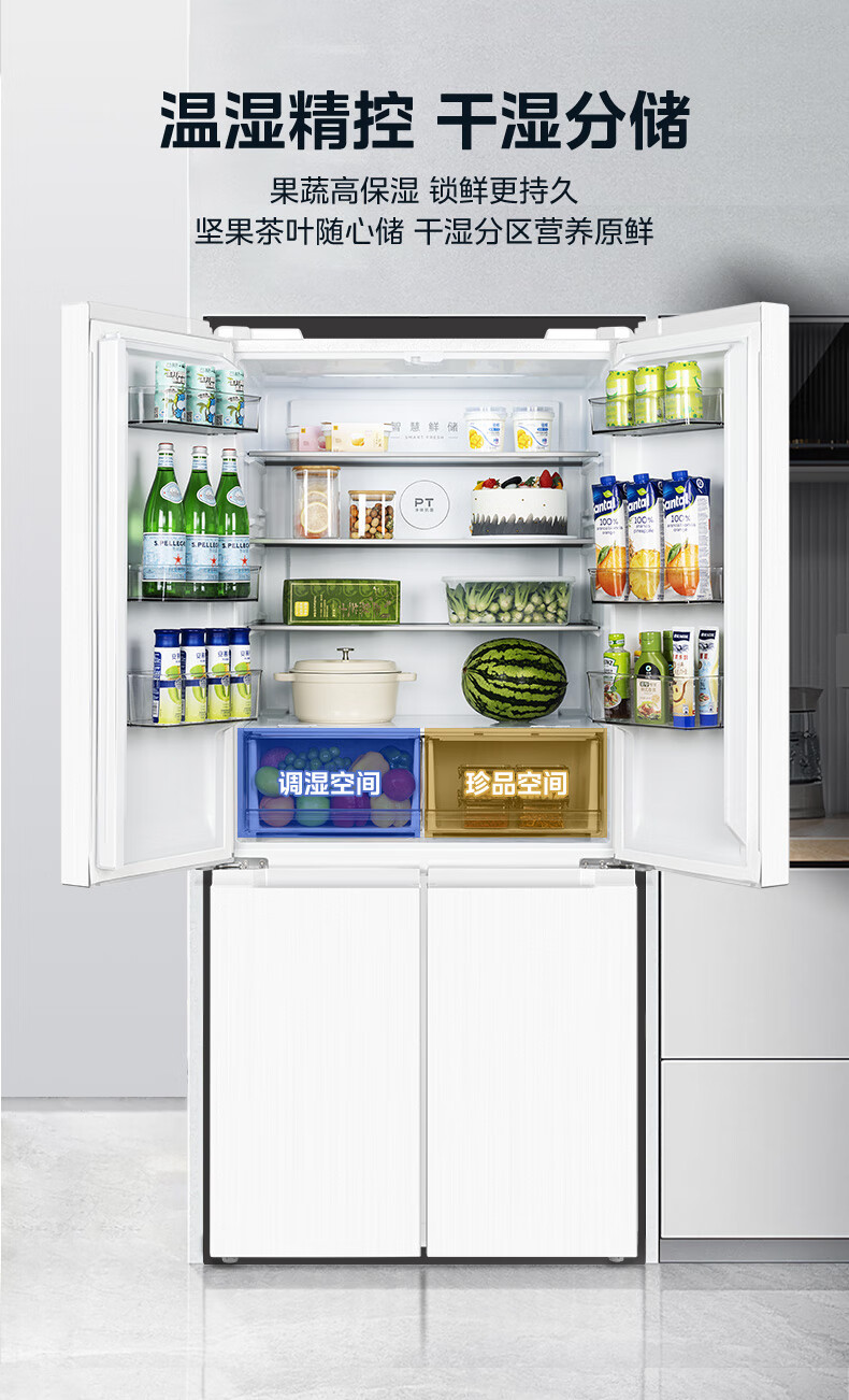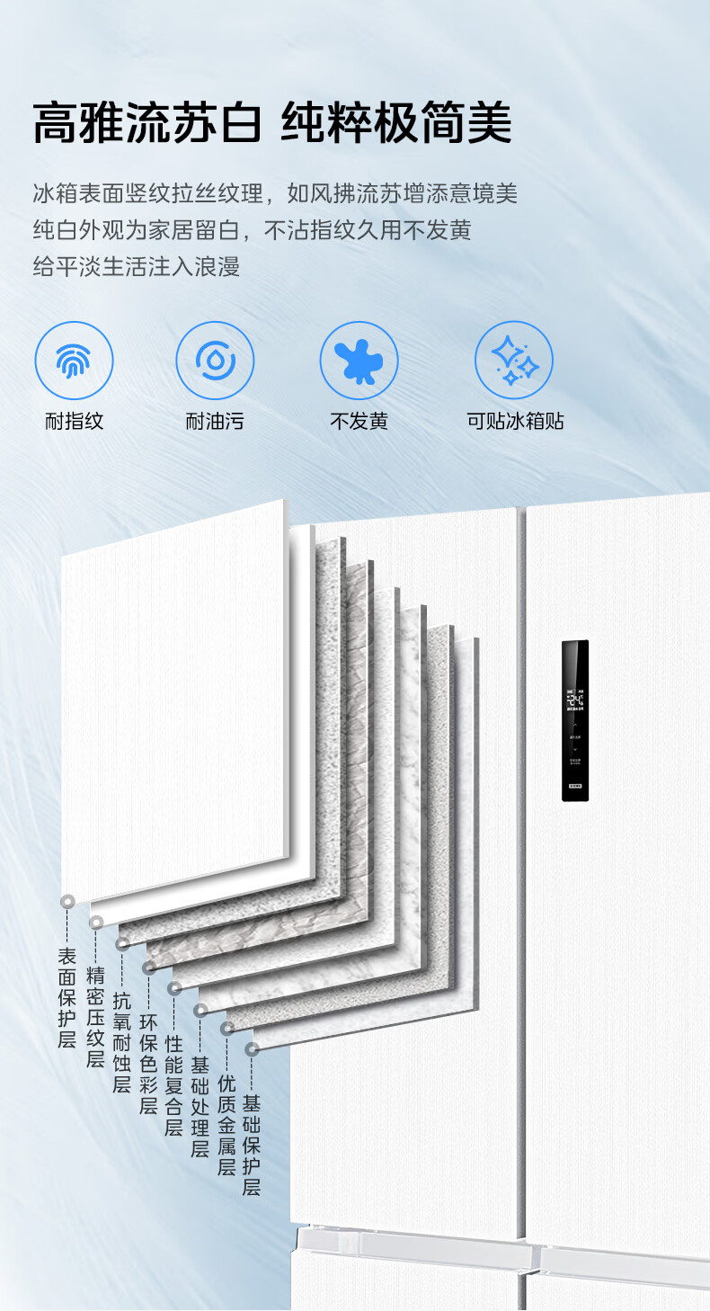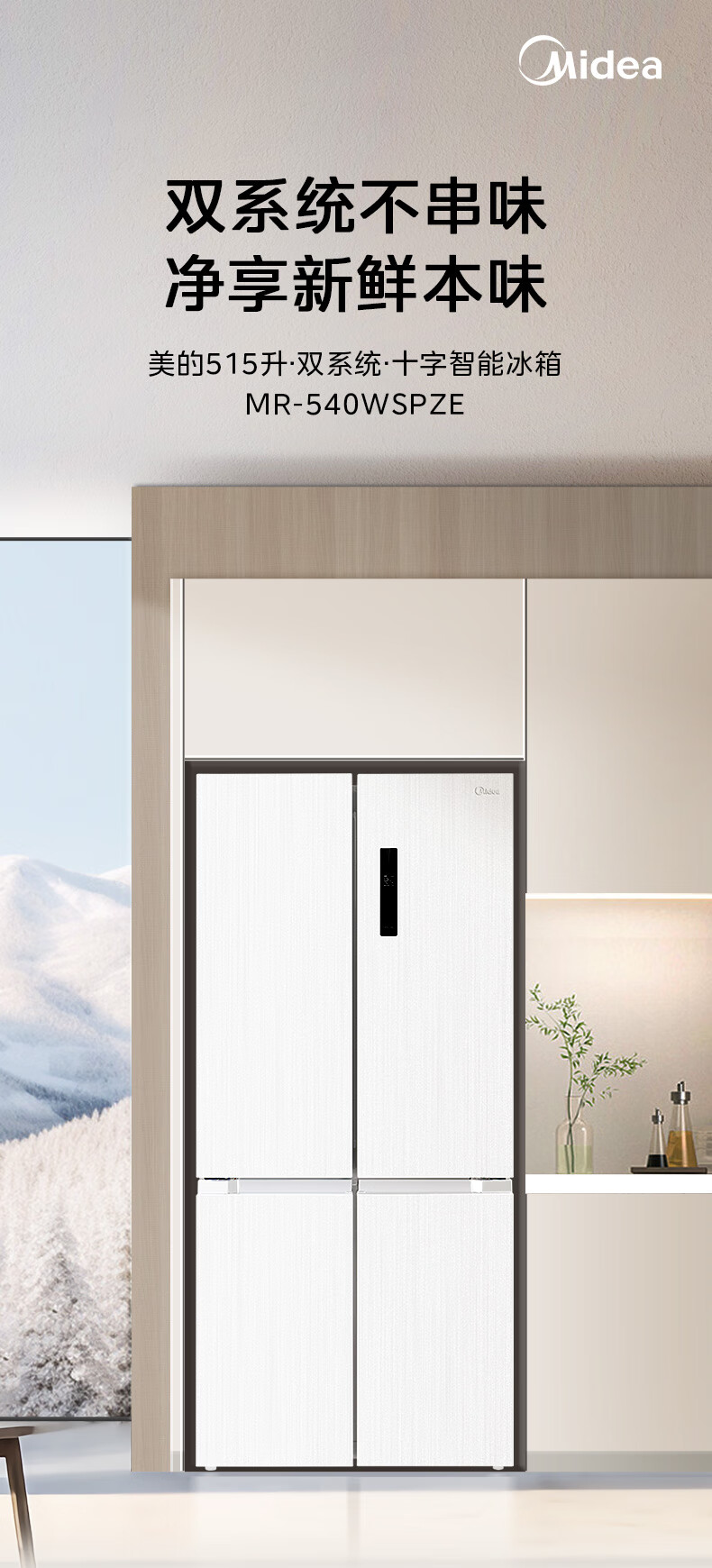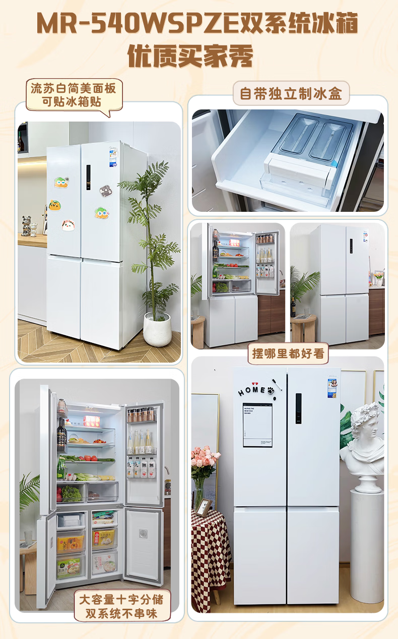 Midea 540 cross four-door door-to-door inverter first-level dual-system dual-cycle large-capacity air-cooled frost-free independent ice box smart refrigerator national subsidy MR-540WSPZE Tassel White