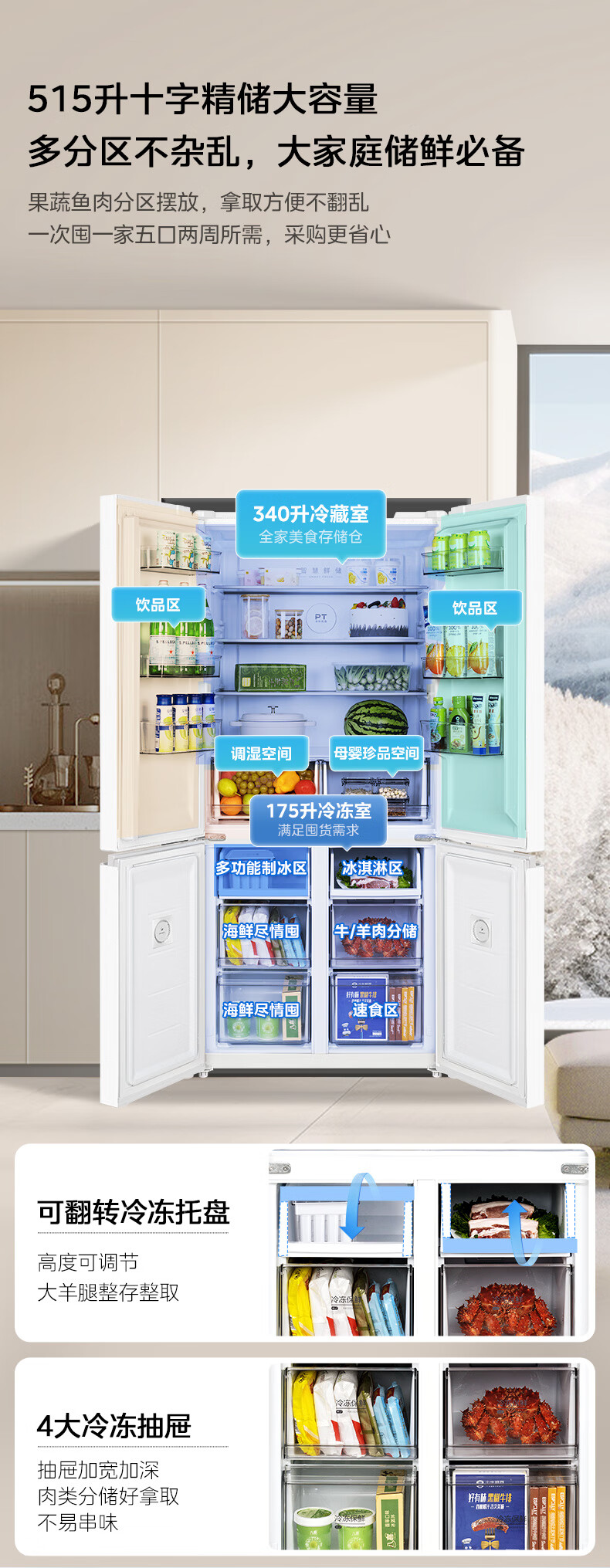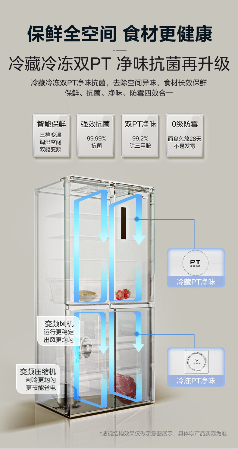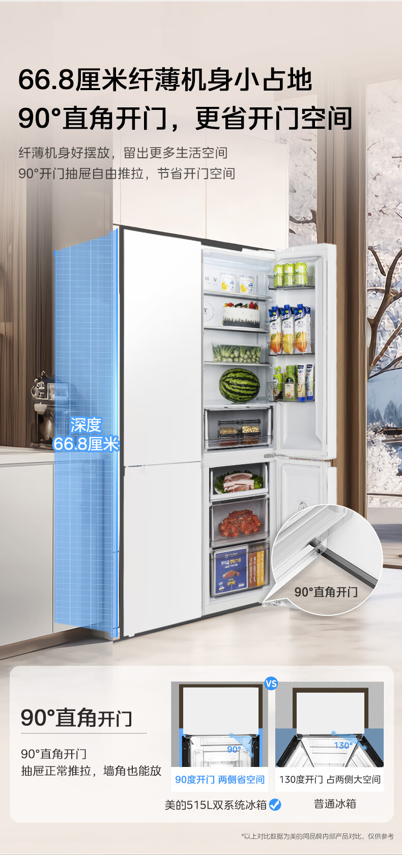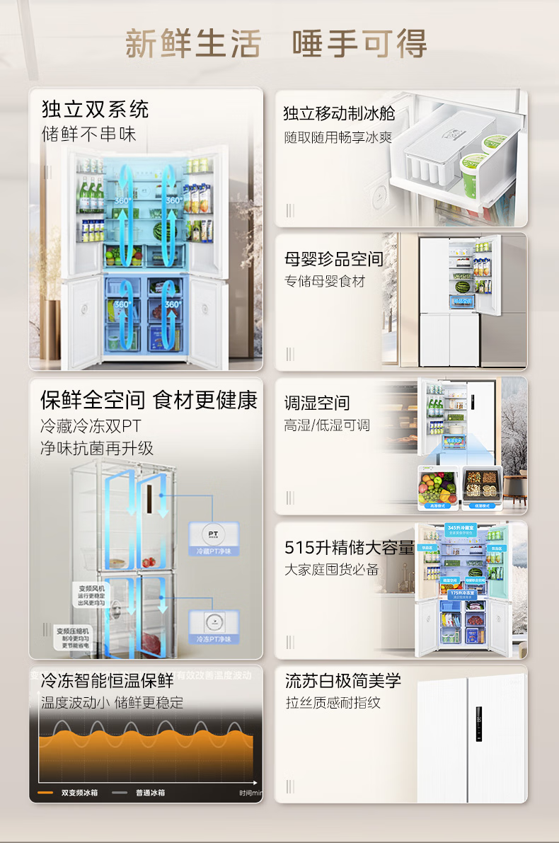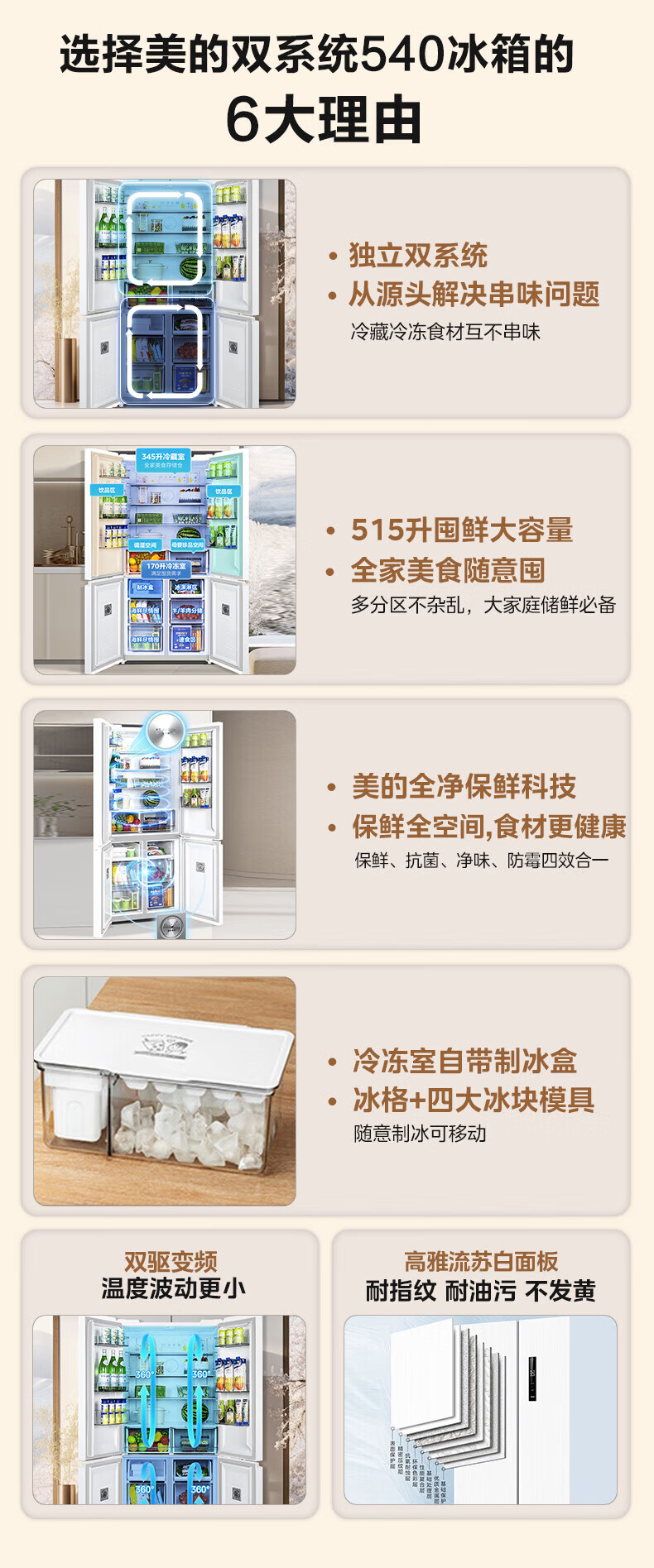 Midea 540 cross four-door door-to-door inverter first-level dual-system dual-cycle large-capacity air-cooled frost-free independent ice box smart refrigerator national subsidy MR-540WSPZE Tassel White