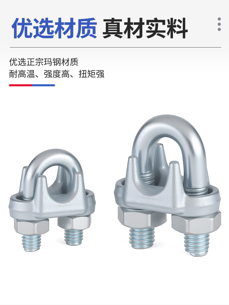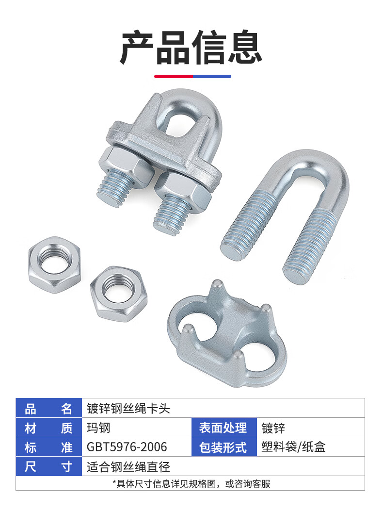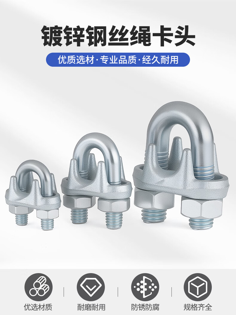 Jinggong national standard galvanized steel wire rope chuck buckle chuck chuck lock U-shaped chuck fixed joint wire rope chuck 10mm (suitable for 10mm wire rope) 5 pcs
