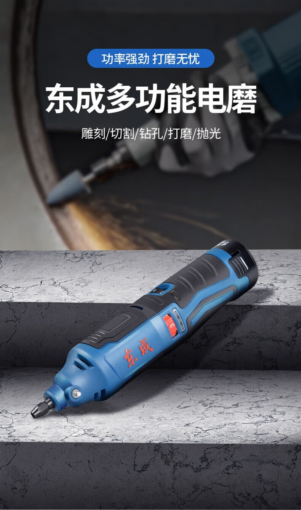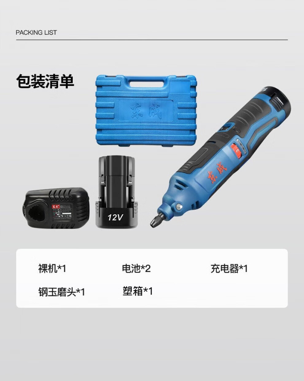 Dongcheng rechargeable electric grinding head adjustable speed straight grinder inner hole grinder grinder lithium electric grinder metal jade cutting and grinding machine DCSJ10 (E type) 12V2.0 dual electric