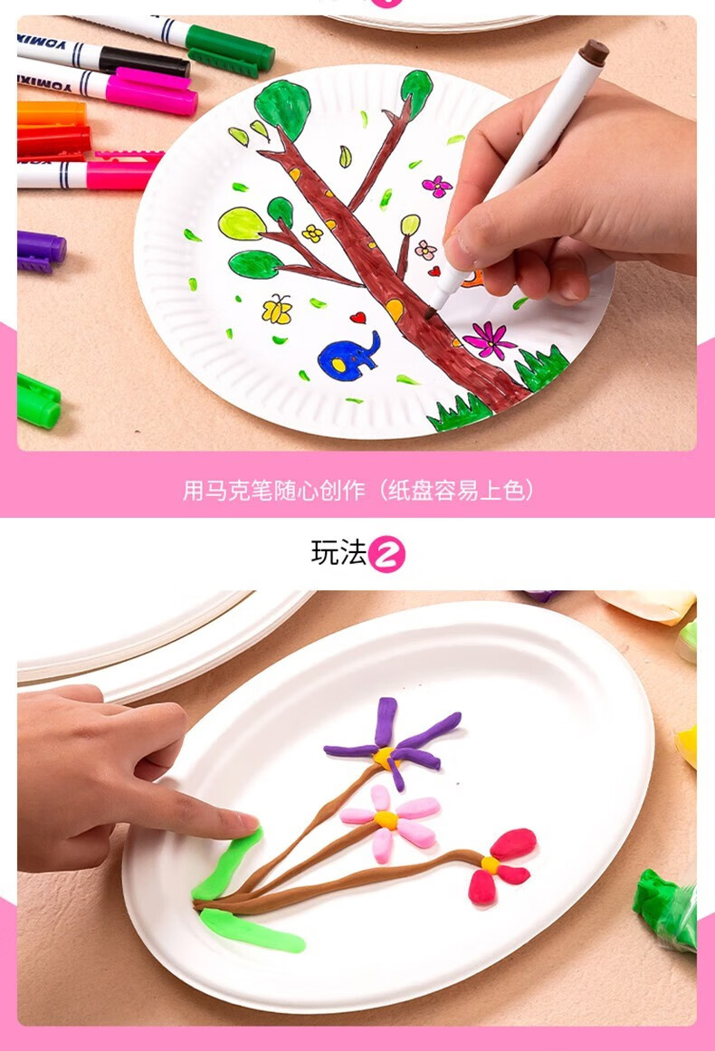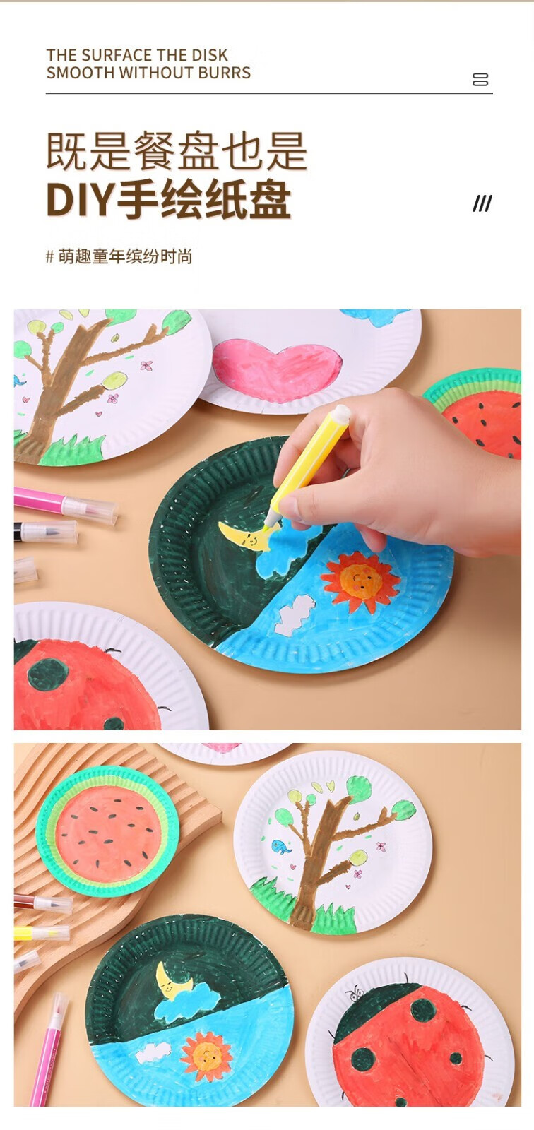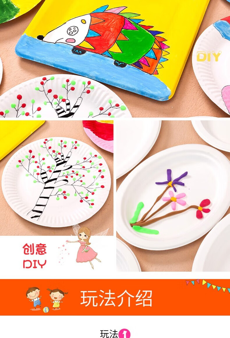 Bao Lanrui disposable paper plate painting paper plate diy painting handmade plate kindergarten creative graffiti plate cake fruit plate paper plate 6 inches about 15cm 100 pieces