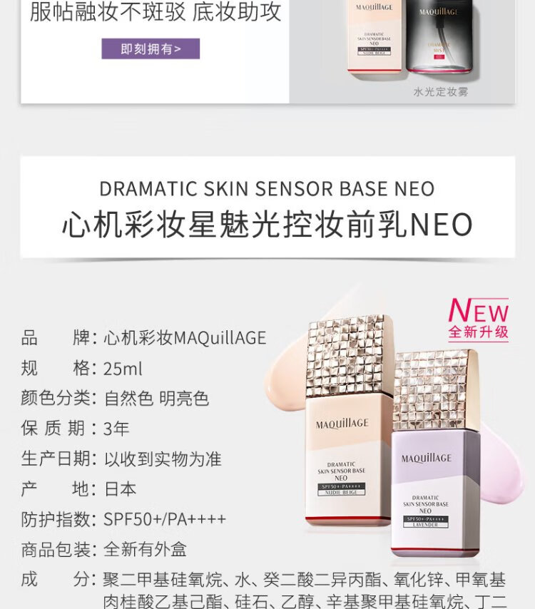 MAQUILLAGE Makeup Star Charming Light Control Primer NEO Sunscreen Cream Bright Color Makeup Primer 25ml
