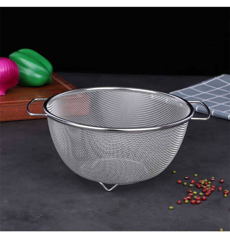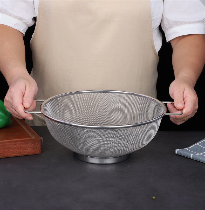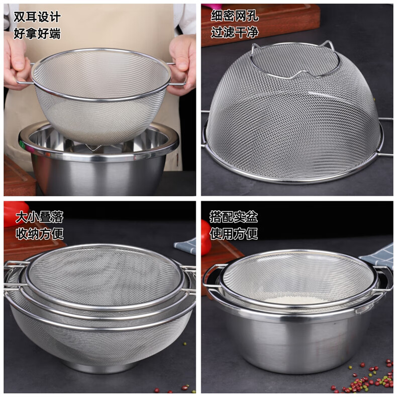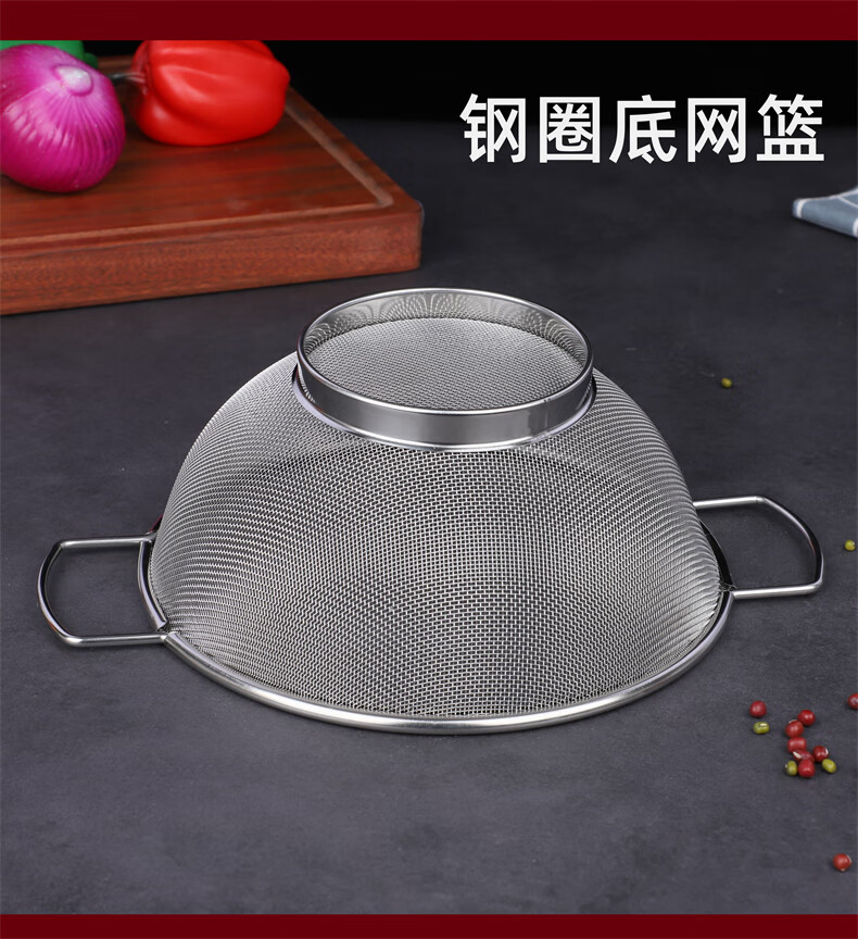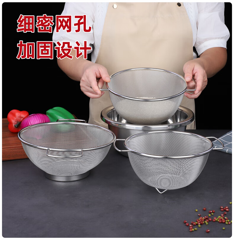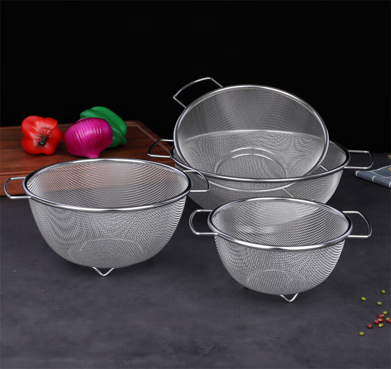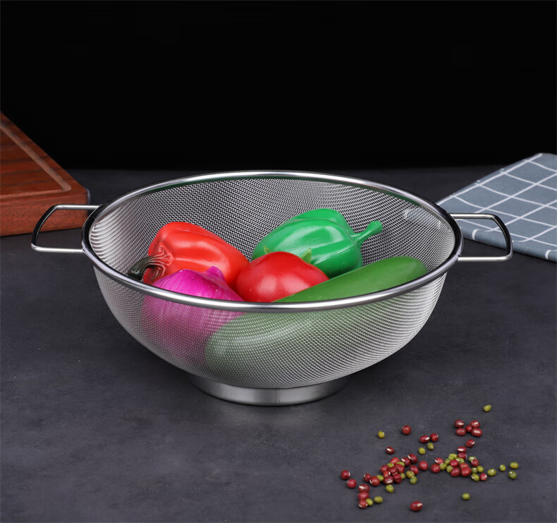 Xingyue thickened stainless steel double-eared mesh basket 304 stainless steel basin vegetable basket dense hole leaky basin fruit basket rice washing basket 17-wire double-eared mesh basket