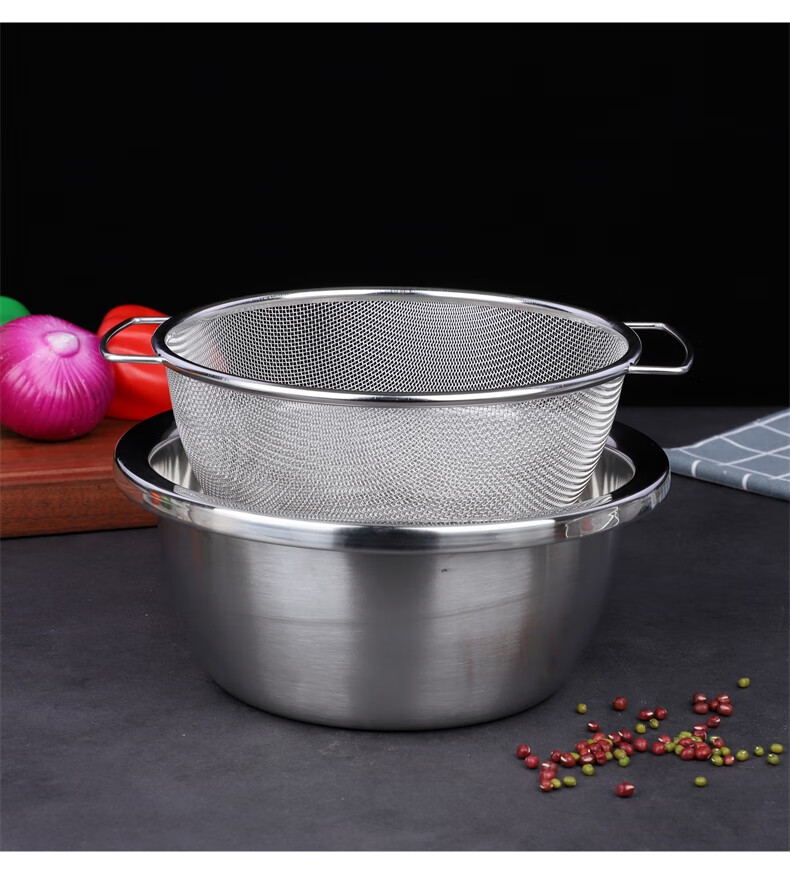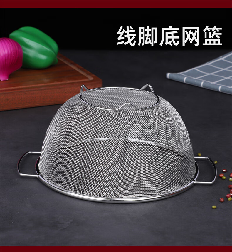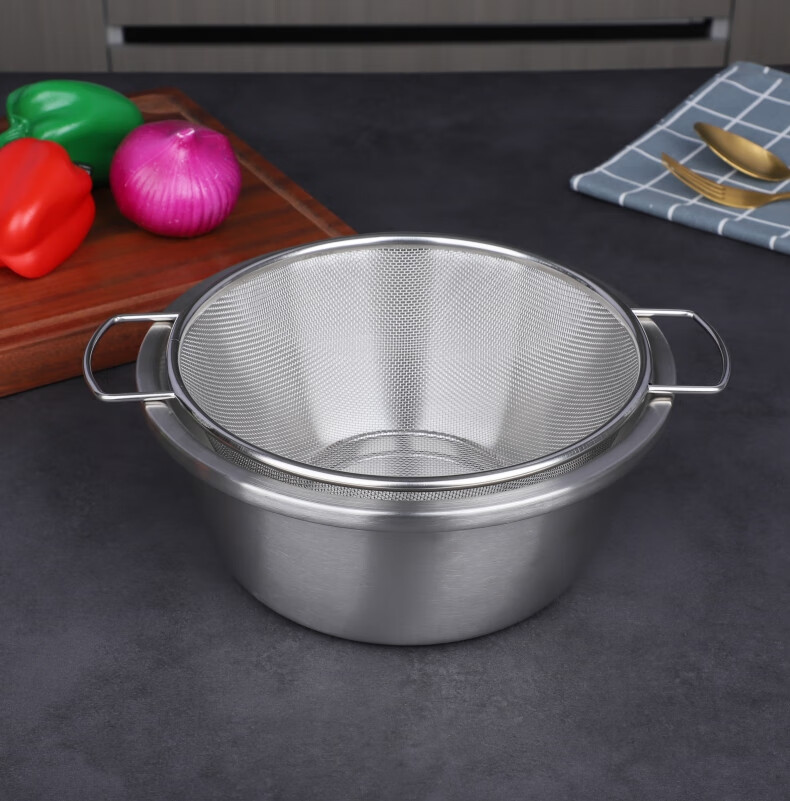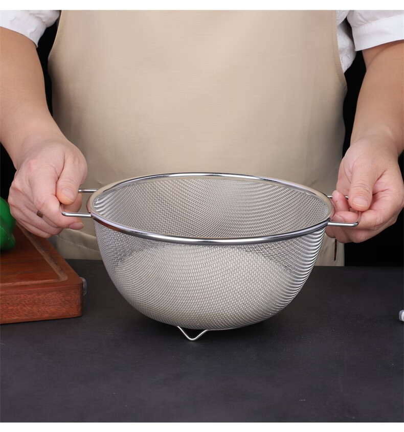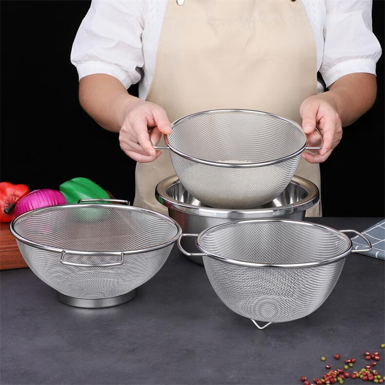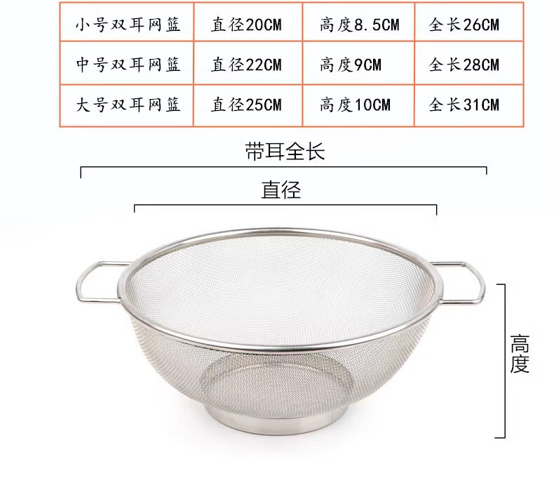 Xingyue thickened stainless steel double-eared mesh basket 304 stainless steel basin vegetable basket dense hole leaky basin fruit basket rice washing basket 17-wire double-eared mesh basket