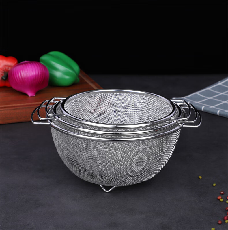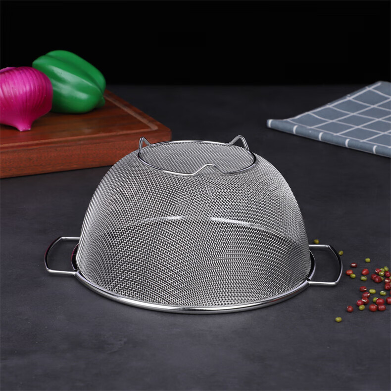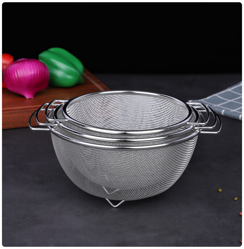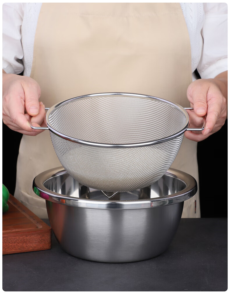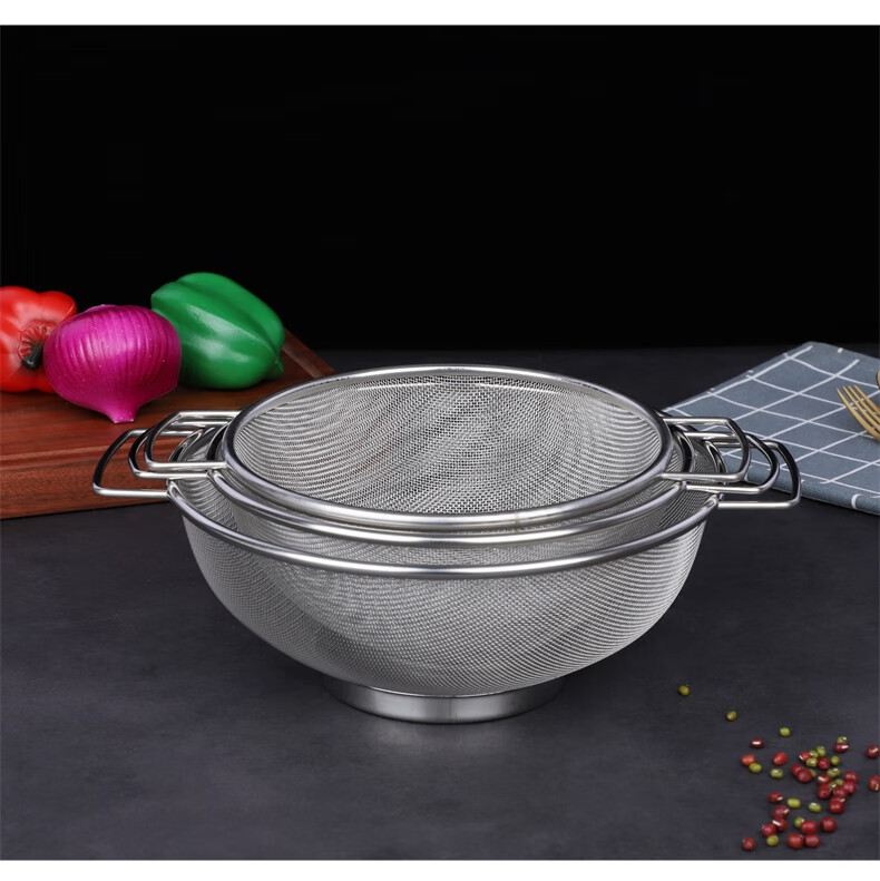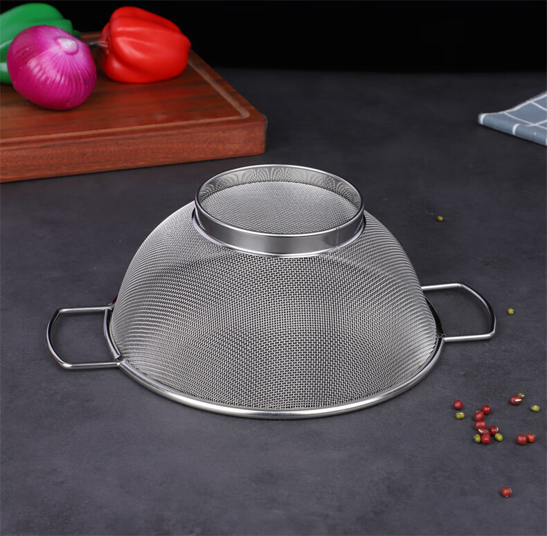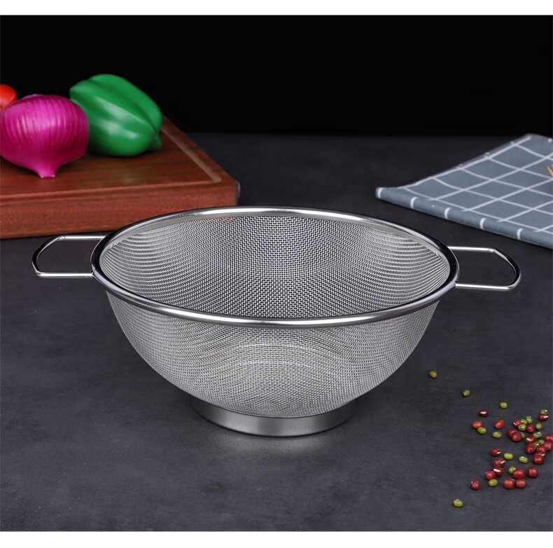 Xingyue thickened stainless steel double-eared mesh basket 304 stainless steel basin vegetable basket dense hole leaky basin fruit basket rice washing basket 17-wire double-eared mesh basket