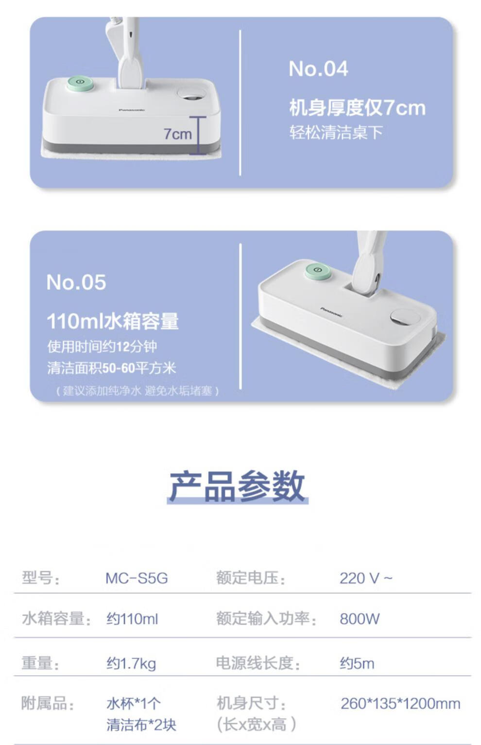 Panasonic steam mop multifunctional household high temperature steam sterilization and decontamination non-cordless electric mop cleaning machine purple