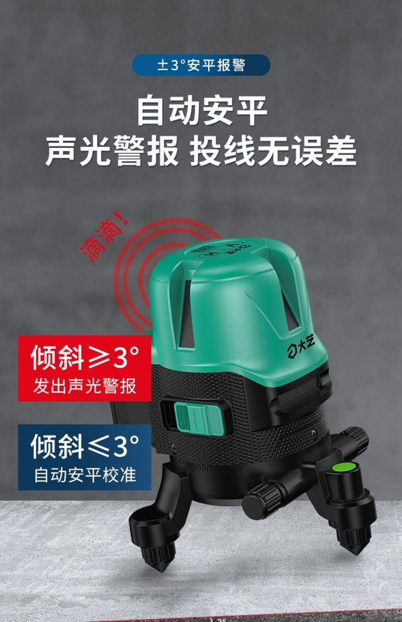 Dayi Green Light Level Laser High-Precision Line Projection Automatic Line Leveling Gauge Wall Sticker PSL 02-3G Three Line