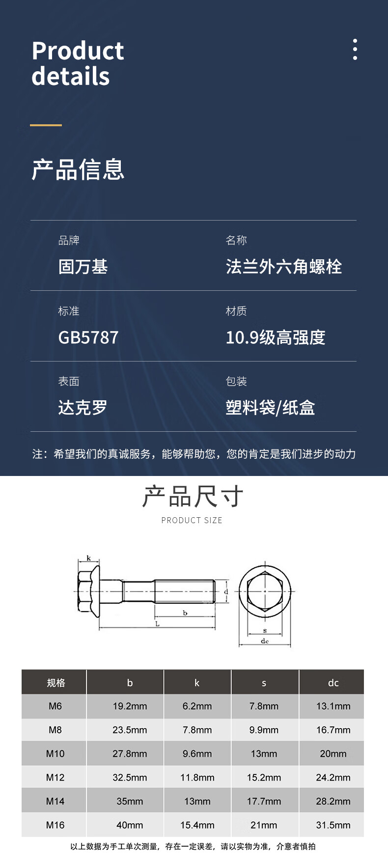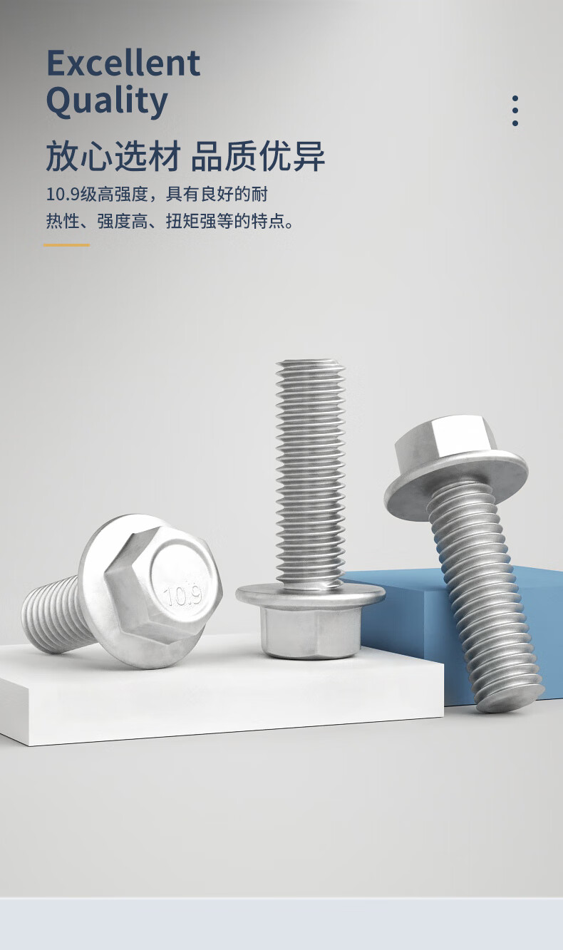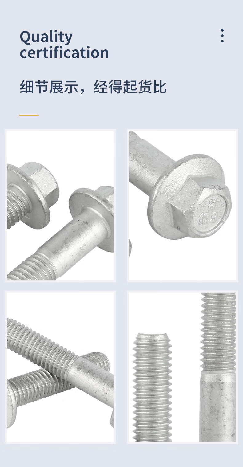 Guwanji Grade 10.9 external hexagonal flange bolt Dacromet automotive hexagonal padded screw large national standard fastener M6x12 (20 pieces)